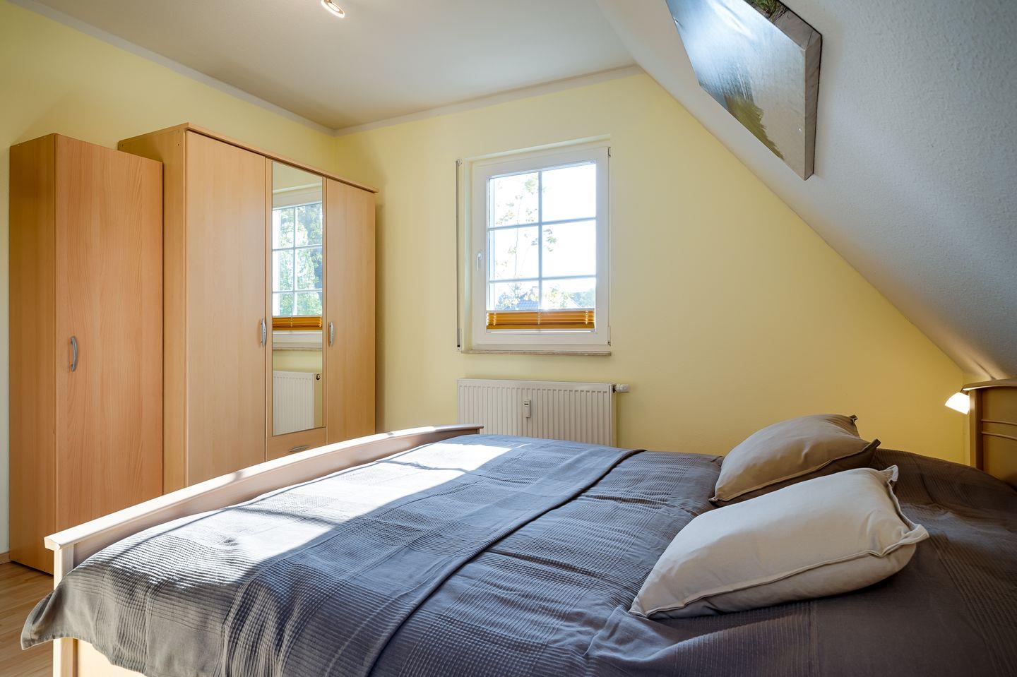 1 Schlafzimmer mit Doppelbett (1,80x2,00m), verstellbare Lattenroste und Lesesessel