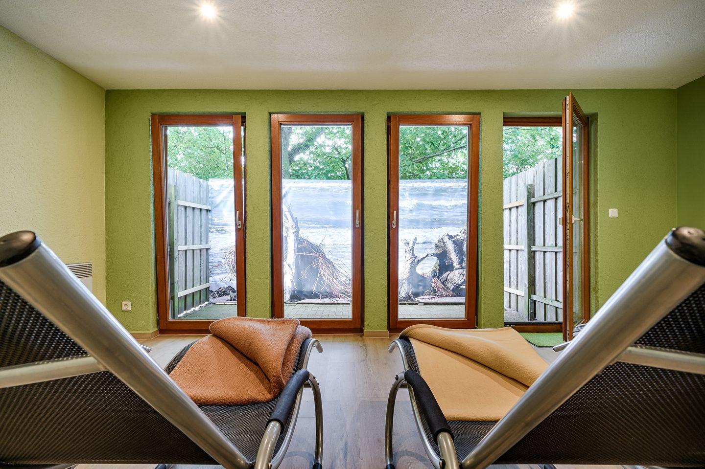 separates Saunahaus mit Bio-Sauna, Ruheraum, Dusche und WC