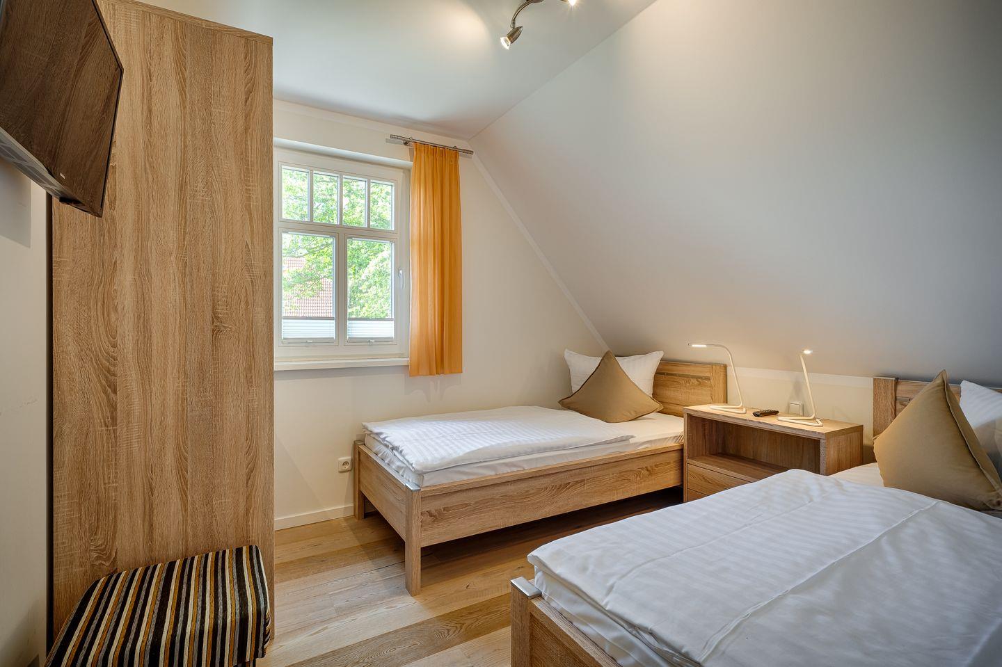 2 Schlafzimmer mit 2 Einzelbetten (0,90x2,00m), verstellbare Lattenroste, Sat-TV
