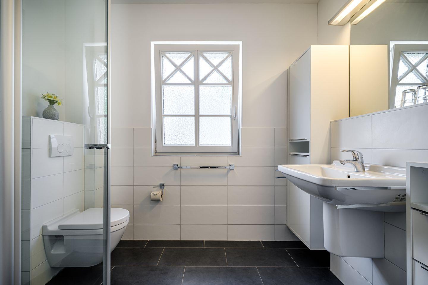 Bad mit ebenerdiger Dusche und anliegender Münzsauna (2,-€ pro Stunde)