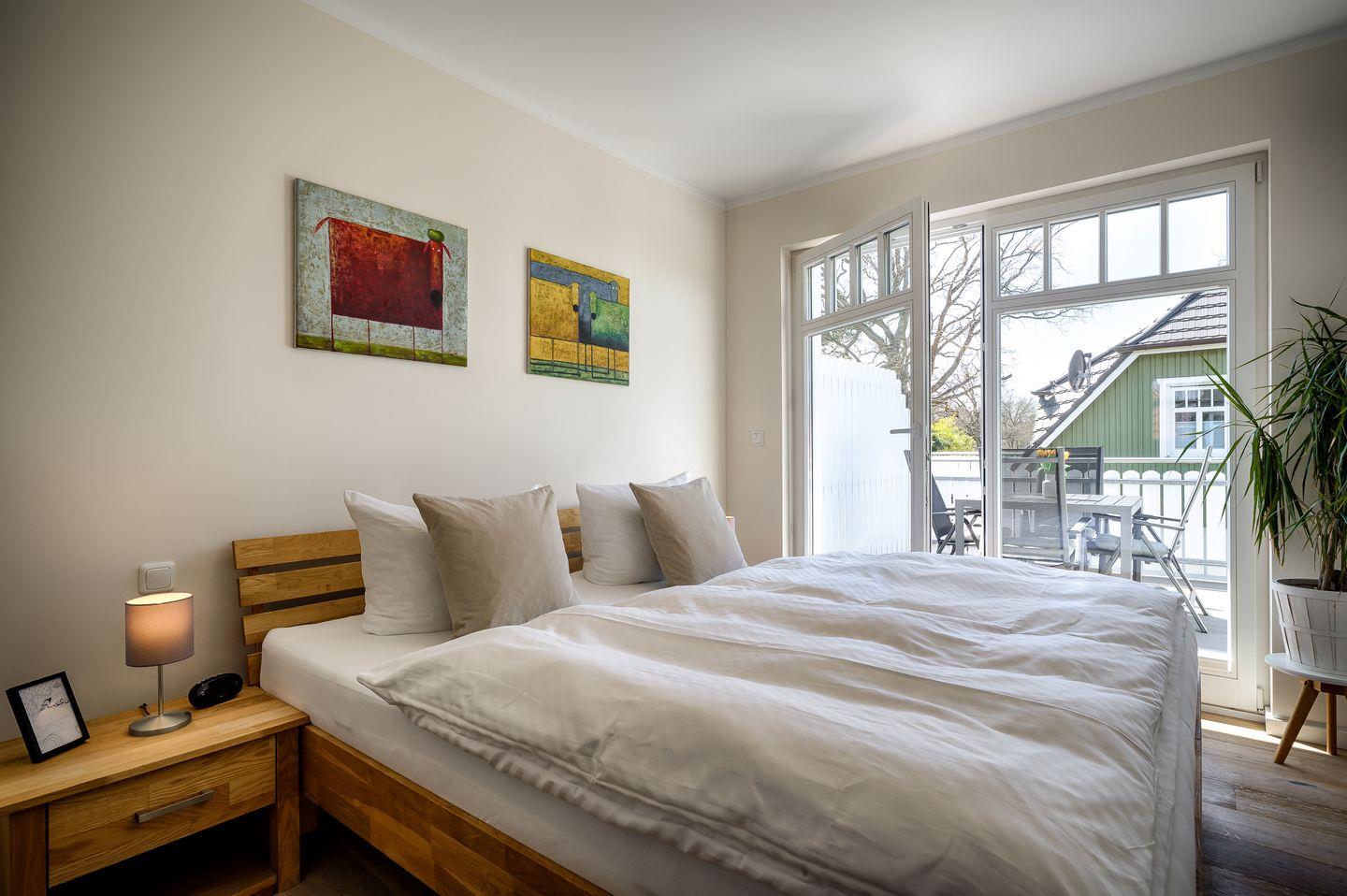 1 Schlafzimmer mit Doppelbett (1,80x2,00m), Zugang zur Dachterrasse