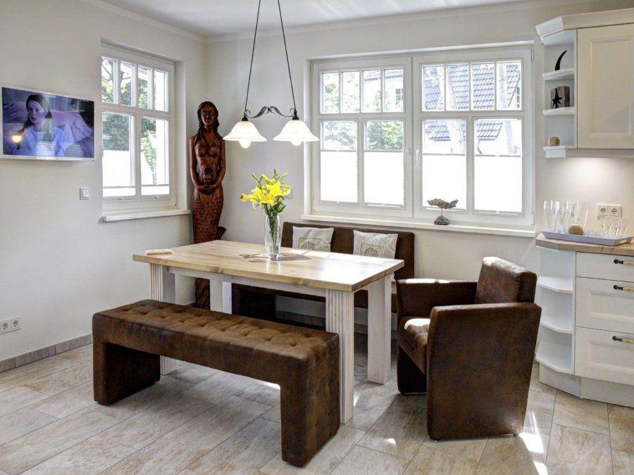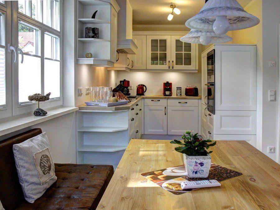 offene Landhaus-Einbauküche mit Essecke