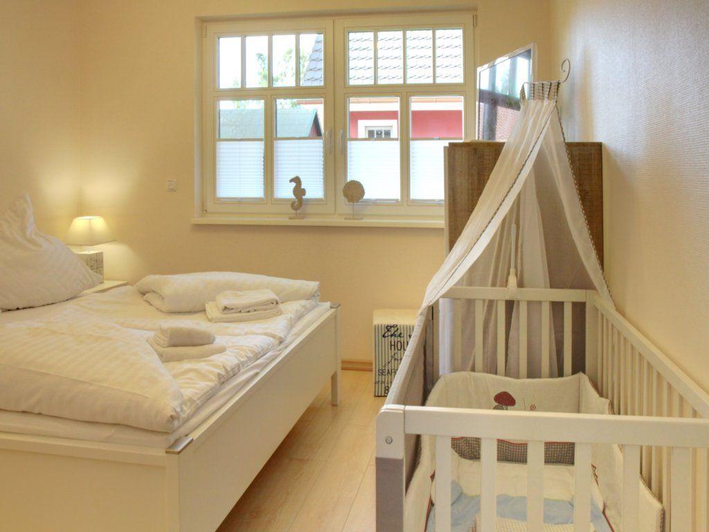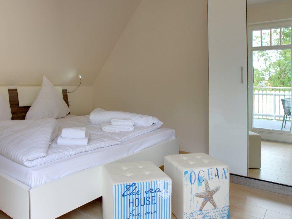 1 Schlafzimmer mit Doppelbett (1,80x2,00m), verstellbare Lattenroste, TV, eigenes Bad mit Wanne/ebenerdiger Dusche