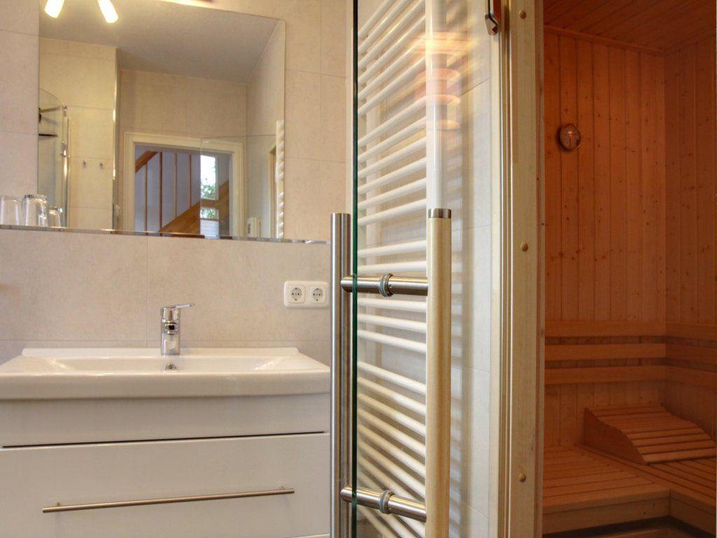 Bad mit ebenerdiger Dusche, Sauna (ohne Gebühren)