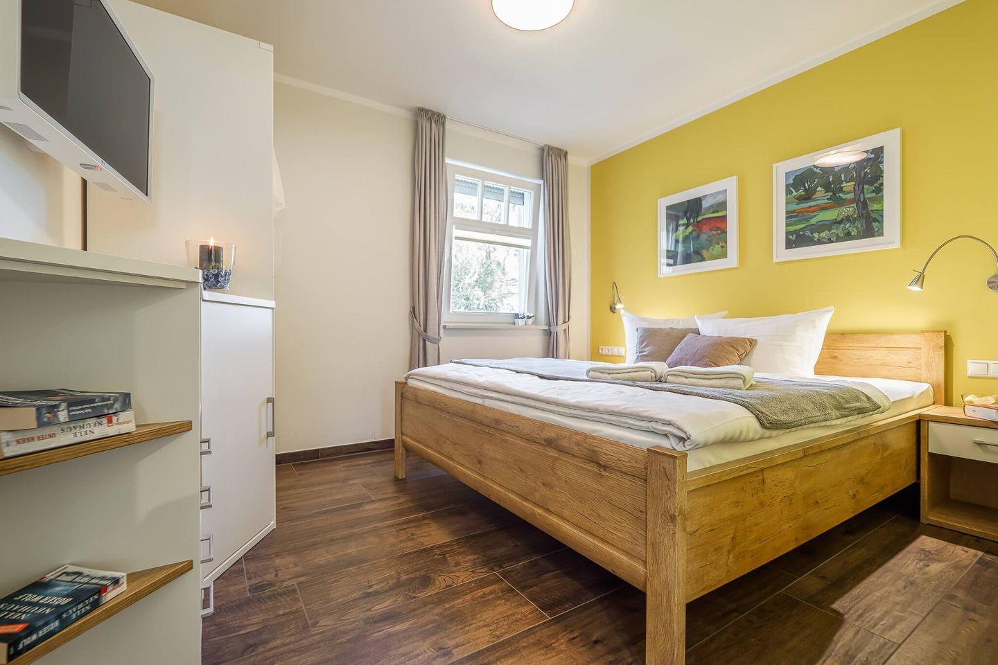 1 Schlafzimmer Doppelbett (1,80x2,00m), Taschenfederkernmatratzen, verstellbare Lattenroste, TV