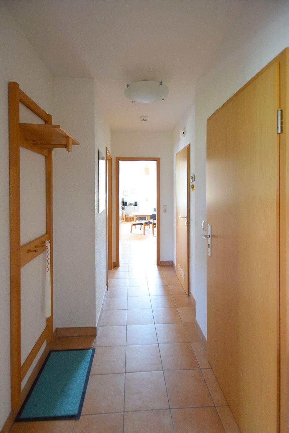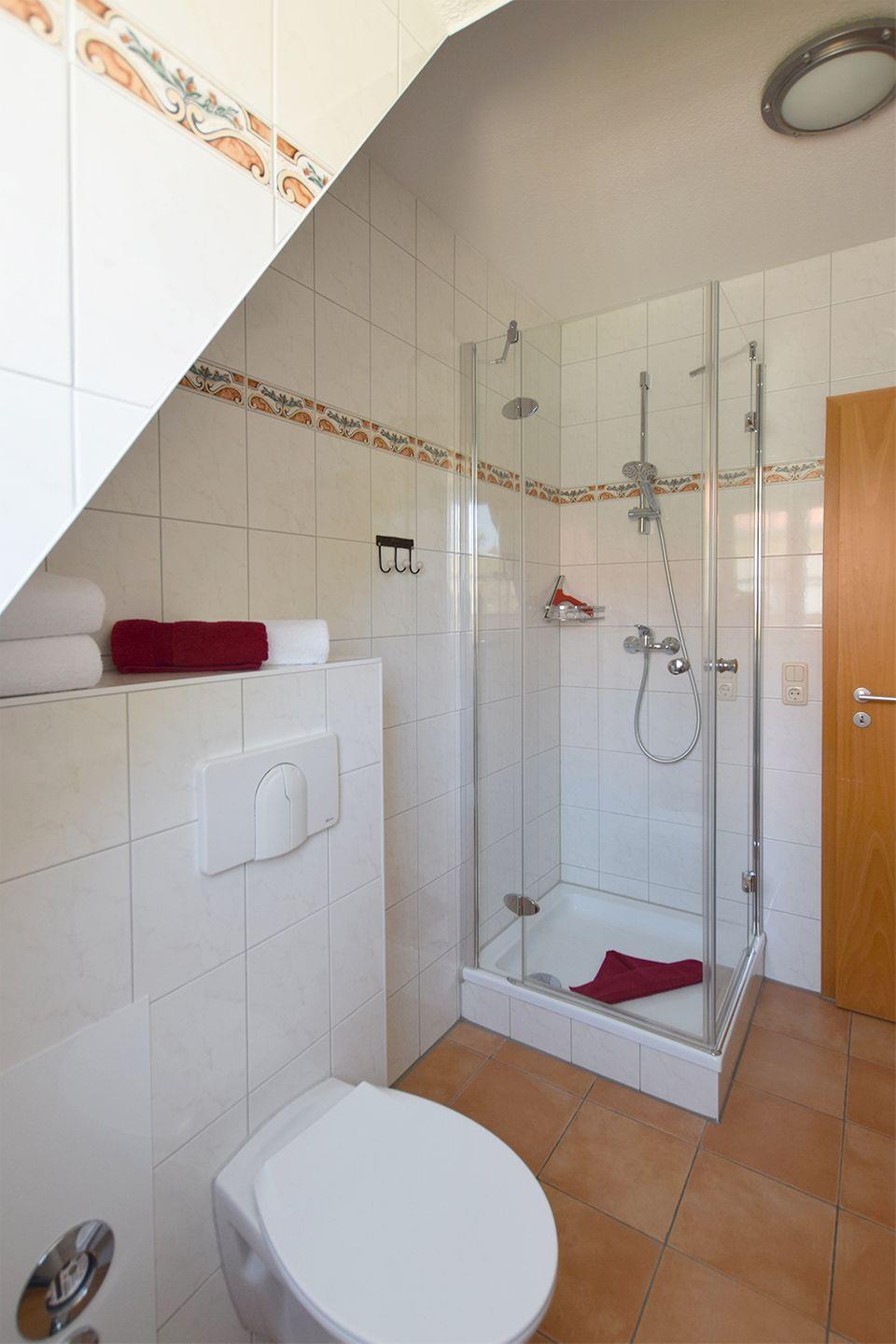 Ferienwohnung bis 4 Personen | ca. 60 qm Wohnfläche | OG Wohnbereich mit Küchenzeile, Bad, 2 Schlafzimmer | Süd-Balkon | 1 Parkplatz | Wohnbereich Esstisch, Sitzgarnitur, Radio mit CD/DVD-Player, TV SAT/Kabel | Küchenzeile Backofen, Geschirrspüler, Herd, Kaffeemaschine, Kühlschrank mit Gefrierfach, Mikrowelle, Toaster, Wasserkocher | Bad Dusche, Waschmaschine, WC | 2 Schlafzimmer 1 Doppelbett (180 x 200 cm), 2 Einzelbetten (90 x 200 cm) | Bollerwagen, Waschmaschine | Gemeinschaftliche Nutzung von Fahrradschuppen, Garten, Grillplatz, WLAN