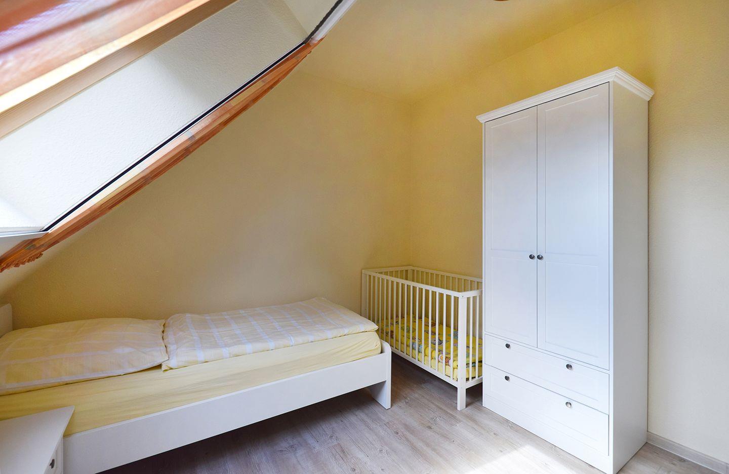 Im Obergeschoss befinden sich zwei Schlafzimmer: ein Schlafzimmer mit Doppelbett (180 x 200 cm) und ein weiteres mit zwei Einzelbetten (90 x 200 cm). Für kleine Gäste stehen ein Babygitterbett und ein Kinderhochstuhl zur Verfügung. Bettwäsche und 2 Handtücher pro Person sind ab 7 Übernachtungen ebenfalls inklusive. Außerdem genießen Sie eine Terrasse zum Entspannen und einen eigenen Parkplatz direkt am Haus.