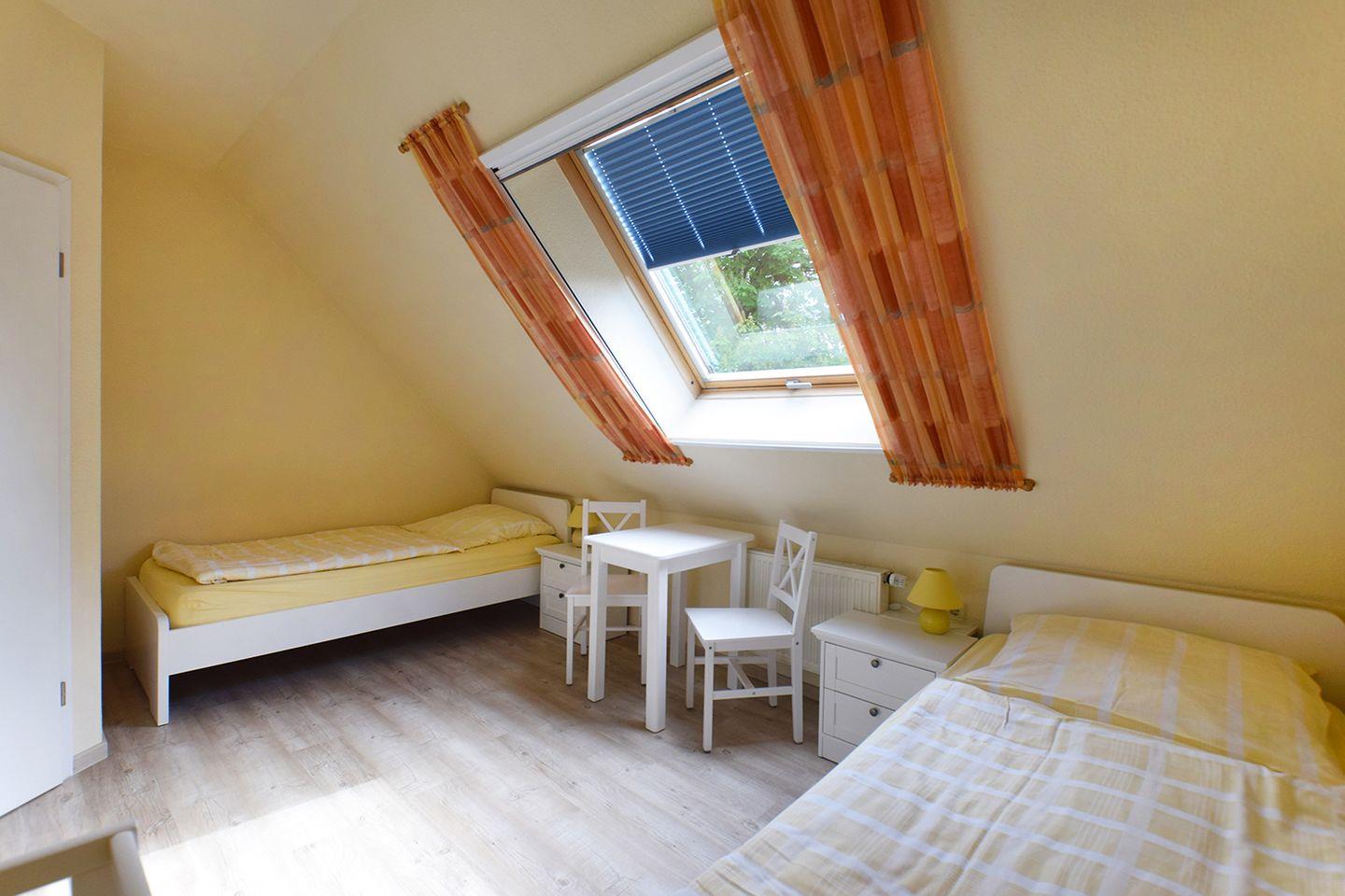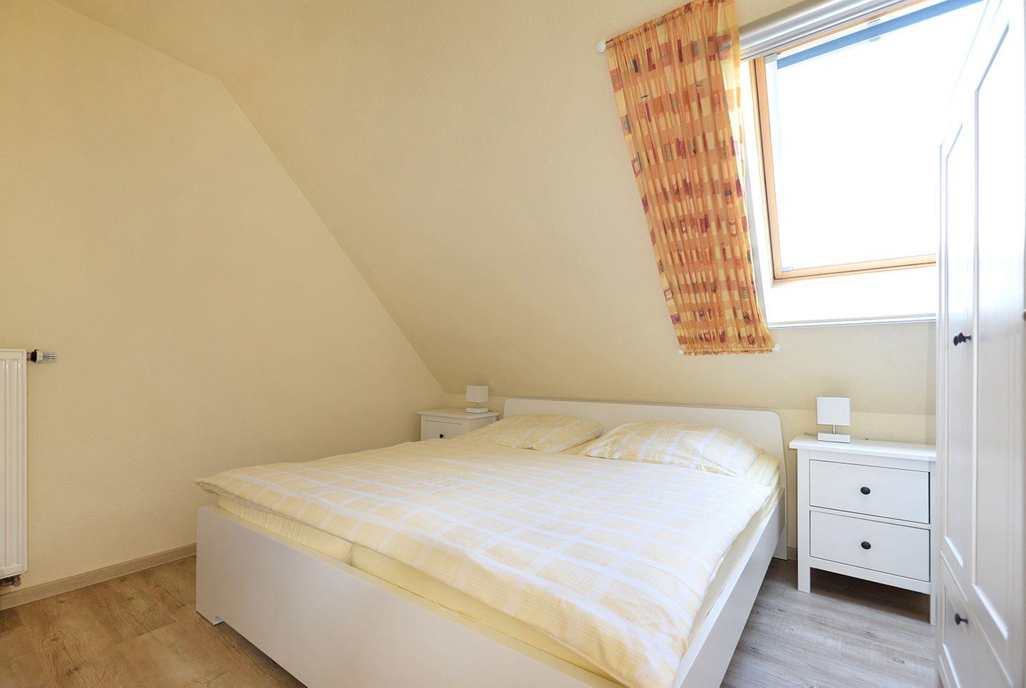 Reihenhaus bis 5 Personen | Haustiere möglich | ca. 60 qm Wohnfläche | EG Wohnzimmer, Küche, Bad, Treppenhaus | DG (Treppe mit Kindersicherung) 2 Schlafzimmer | Terrasse | 1 Parkplatz | Wohnzimmer Schlafsofa, Radio mit CD/DVD-Player, TV SAT/Kabel | Küche mit Esstisch, Backofen, Herd/Cerankochfeld, Geschirrspüler, Kühlschrank mit Gefrierfach, Mikrowelle, Kaffeemaschine, Toaster, Wasserkocher | Bad Dusche, WC | 2 Schlafzimmer 1 Doppelbett (180 x 200 cm), 2 Einzelbetten (90 x 200 cm) | Inkl. Babygitterbett, Kinderhochstuhl | Gemeinschaftliche Nutzung von Fahrradschuppen, Grillecke, Sauna, Spielplatz, Waschmaschine, WLAN | Bettwäsche und 2 Handtücher pro Gast sind ab 7 Übernachtungen inklusive