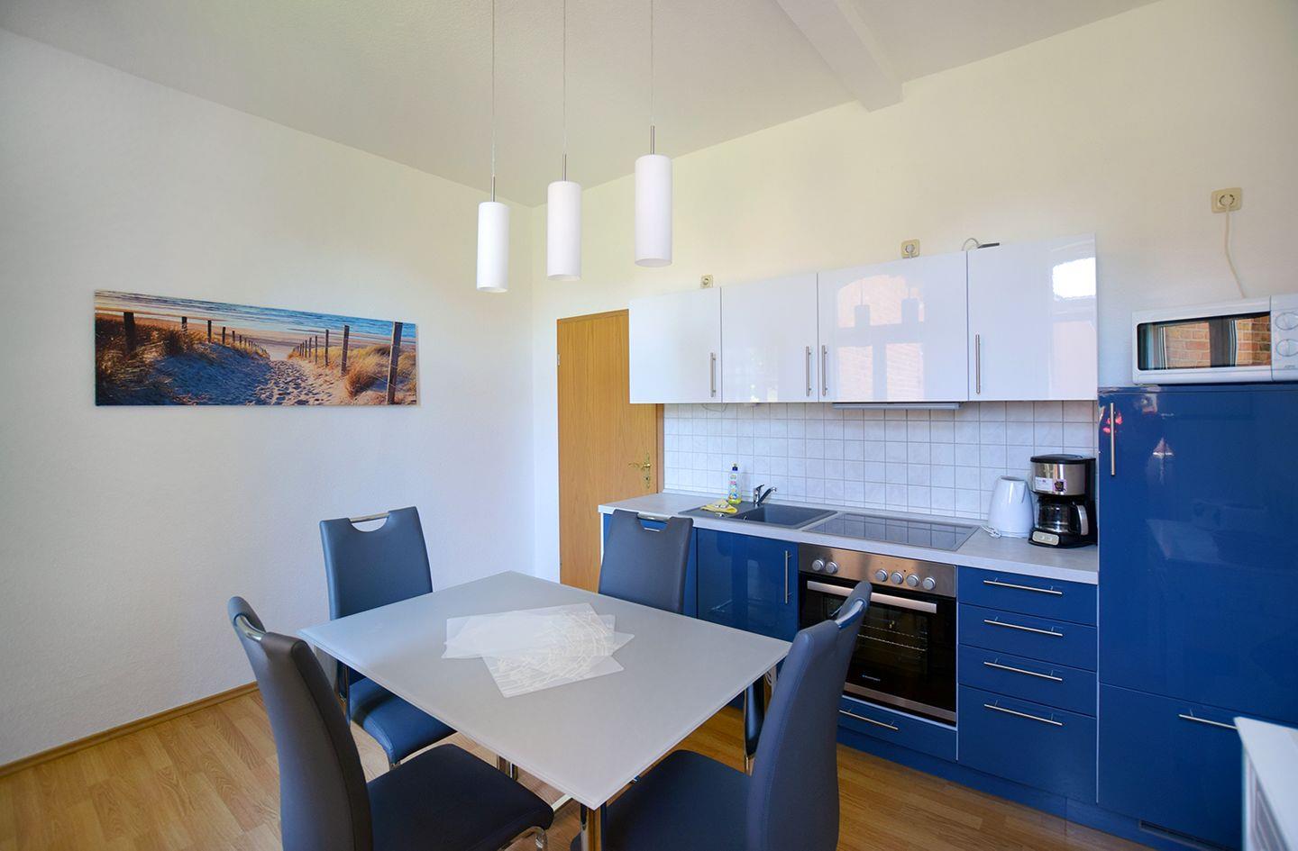 Diese gemütliche Ferienwohnung für bis zu 4 Personen bietet auf ca. 54 m² Wohnfläche einen komfortablen Rückzugsort und ist auch für Gäste mit Haustieren geeignet. Im Erdgeschoss erwartet Sie eine einladende Wohnveranda mit Schlafsofa, TV (SAT/Kabel) und einem Radio mit CD-Player. Die gut ausgestattete Küche verfügt über einen Esstisch, Backofen, Herd, Geschirrspüler, Mikrowelle, Kaffeemaschine, Kühlschrank mit Gefrierfach, Toaster und Wasserkocher – ideal für die Zubereitung von Mahlzeiten.