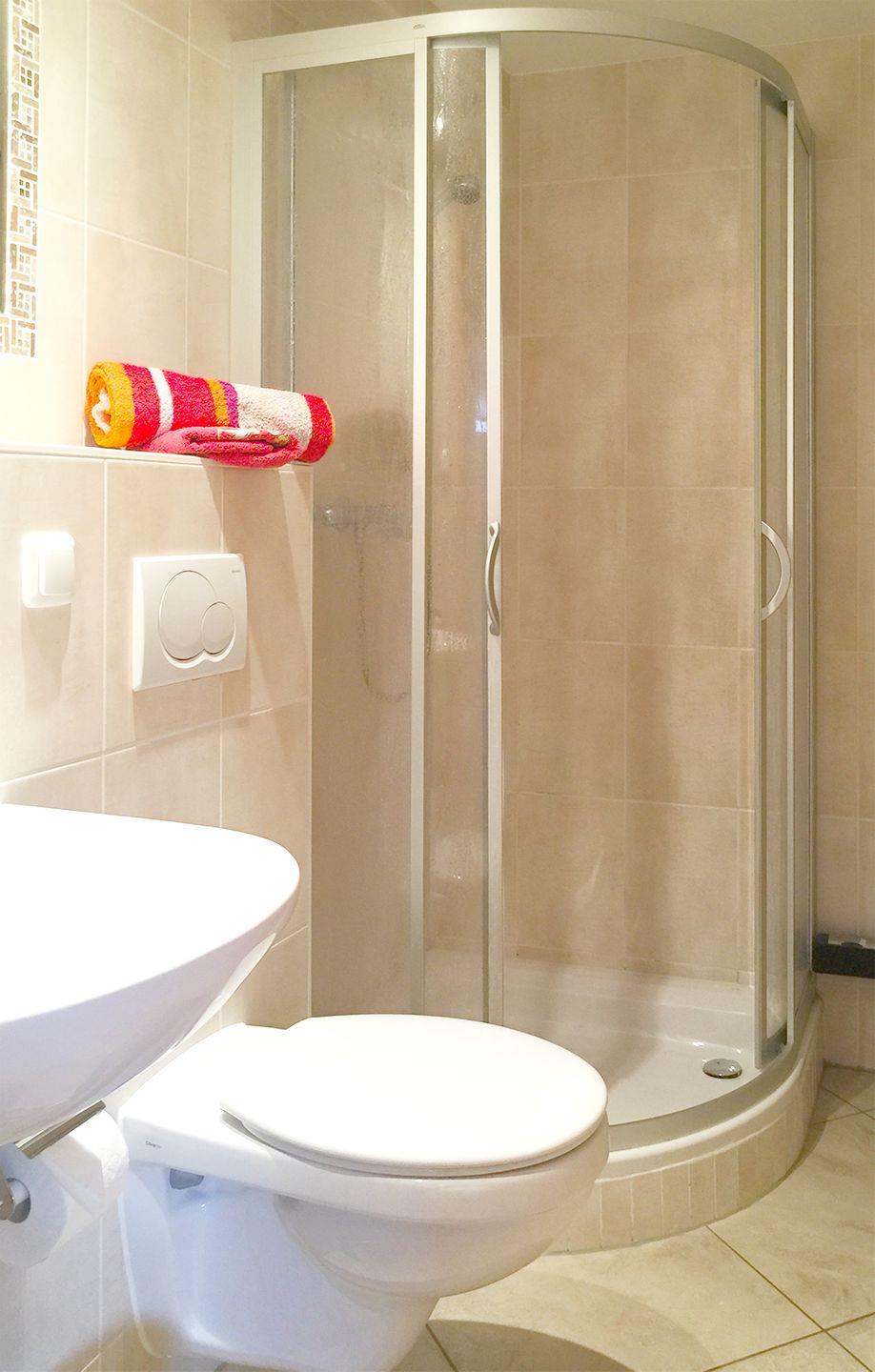 Die gut ausgestattete Küchenzeile verfügt über zwei Cerankochfelder, einen Gourmet-Express-Ofen, eine Dunstabzugshaube, Kaffeemaschine, Kühlschrank (ohne Tiefkühlfach), Mikrowelle, Toaster und Wasserkocher – ideal für die Zubereitung kleiner Mahlzeiten. Das Badezimmer ist mit einer Dusche und einem WC ausgestattet.