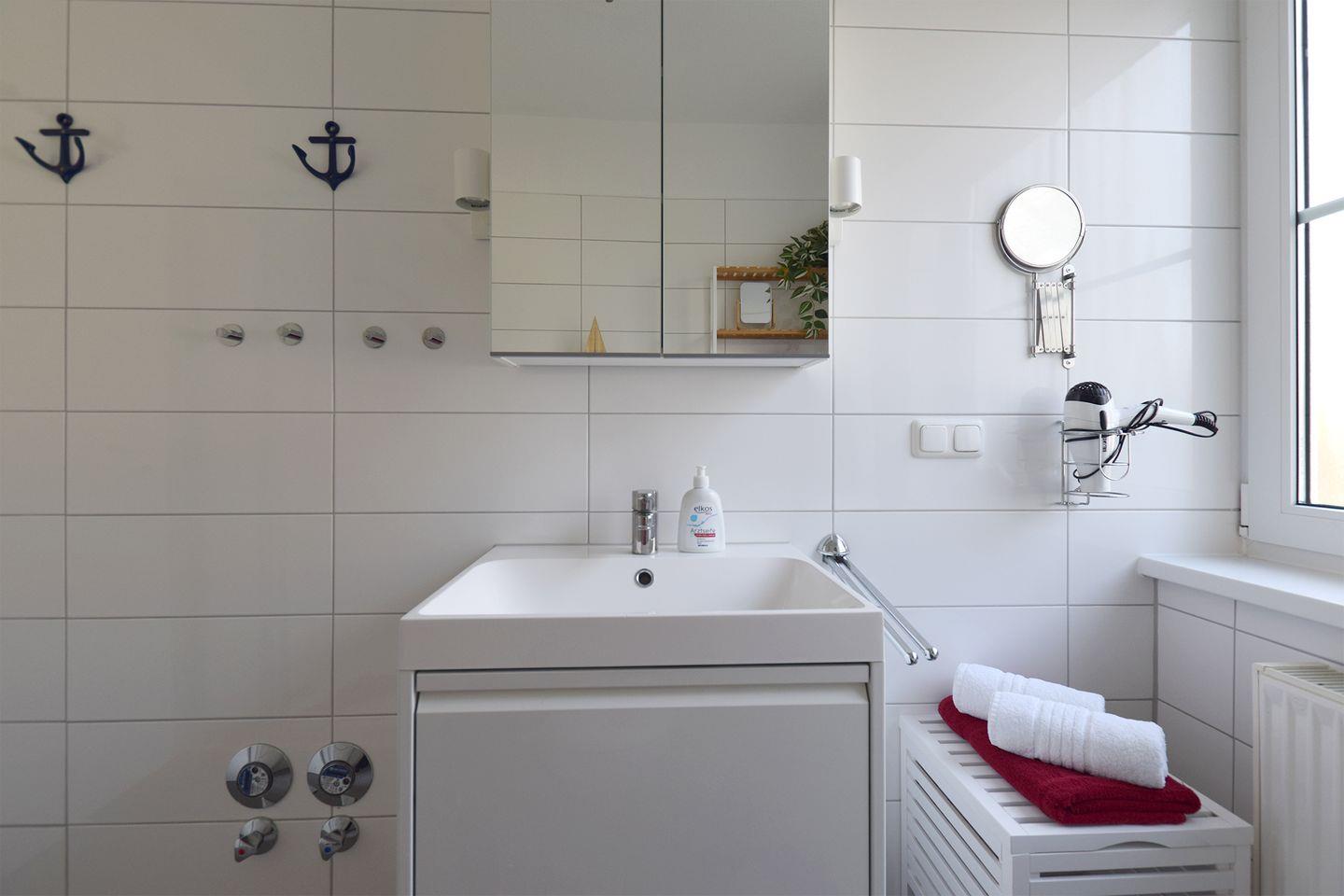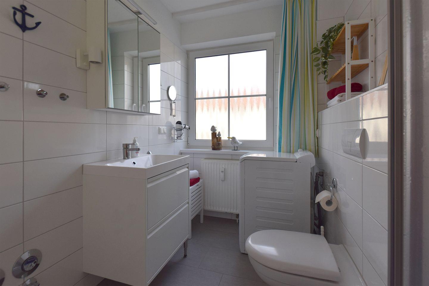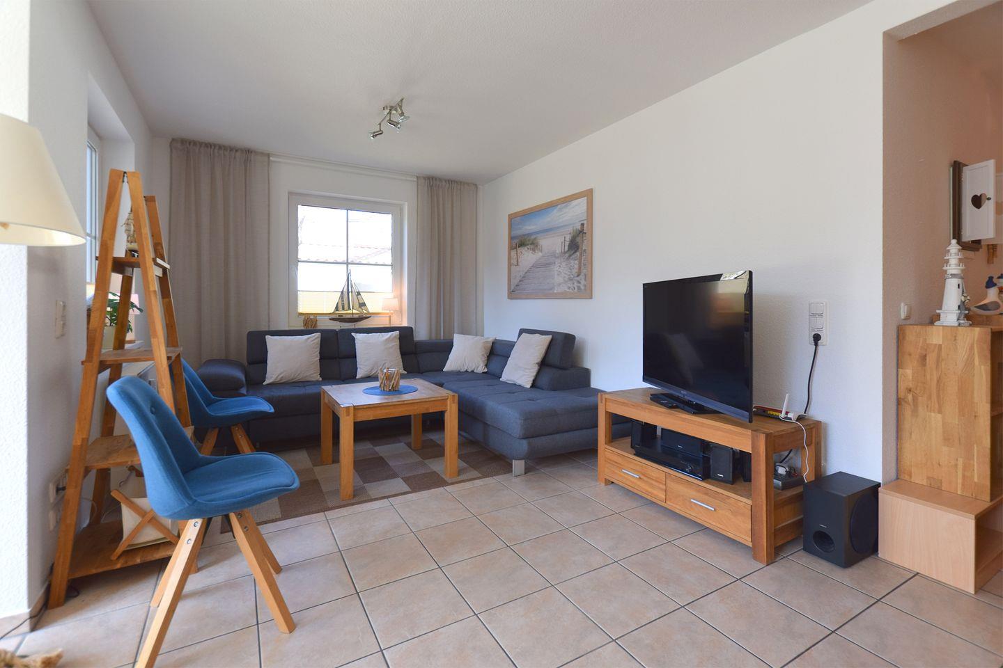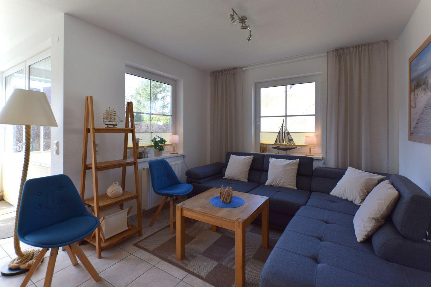 Diese gemütliche Ferienwohnung für bis zu 4 Personen bietet auf ca. 56 m² alles, was für einen entspannten Aufenthalt benötigt wird. Im Erdgeschoss finden Sie den Wohnbereich mit einer komfortablen Sitzgarnitur, einem Esstisch, einem Radio mit CD-Player und einem TV (SAT/Kabel). Die verglaste Veranda sorgt für viel Licht und eine angenehme Atmosphäre, während die Süd-West-Terrasse einen schönen Platz zum Entspannen im Freien bietet. Die moderne Einbauküche ist gut ausgestattet mit einem Herd, Backofen, Geschirrspüler, Mikrowelle, Kühlschrank mit Gefrierfach, Kaffeemaschine, Toaster und Wasserkocher – ideal für die Zubereitung eigener Mahlzeiten. Das Badezimmer ist mit einer Dusche, einem WC und einer Waschmaschine ausgestattet.