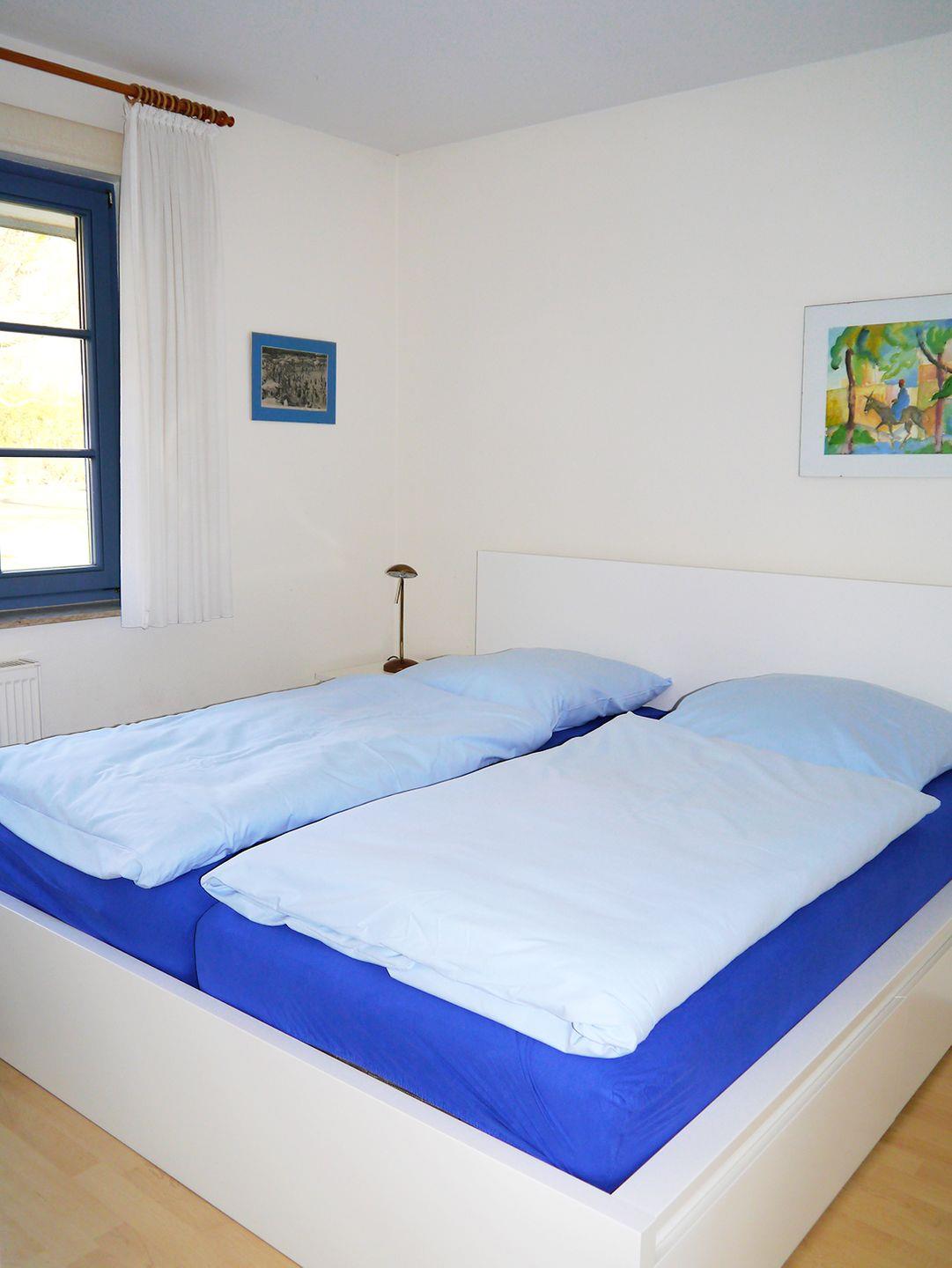 Das Schlafzimmer ist mit einem Doppelbett (180 x 200 cm) ausgestattet und bietet ausreichend Platz für erholsame Nächte. Das Bad ist mit einer Dusche und einem WC ausgestattet.