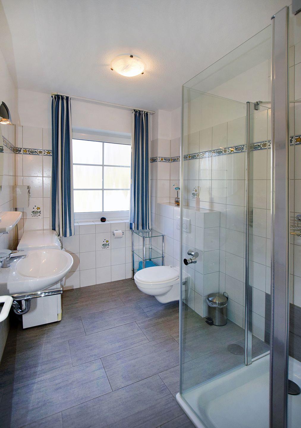 Ferienwohnung bis 4 Personen | ca. 63 m² Wohnfläche | EG Wohnbereich mit Einbauküche, Bad, 2 Schlafzimmer | Süd-Terrasse | 1 Parkplatz | Wohnbereich Esstisch, Sitzgarnitur, Radio mit CD-Player, TV SAT/Kabel | Einbauküche Backofen, Geschirrspüler, Herd, Kaffeemaschine, Kühlschrank (ohne TK), Mikrowelle, Toaster, Wasserkocher | Bad Dusche, Waschmaschine, WC | 2 Schlafzimmer. 1 Doppelbett (180 x 200 cm), 2 Einzelbetten (80 x 200 cm) | Kinderhochstuhl, Reisebett ohne Bettwäsche | Gemeinschaftliche Nutzung von Fahrradschuppen, WLAN