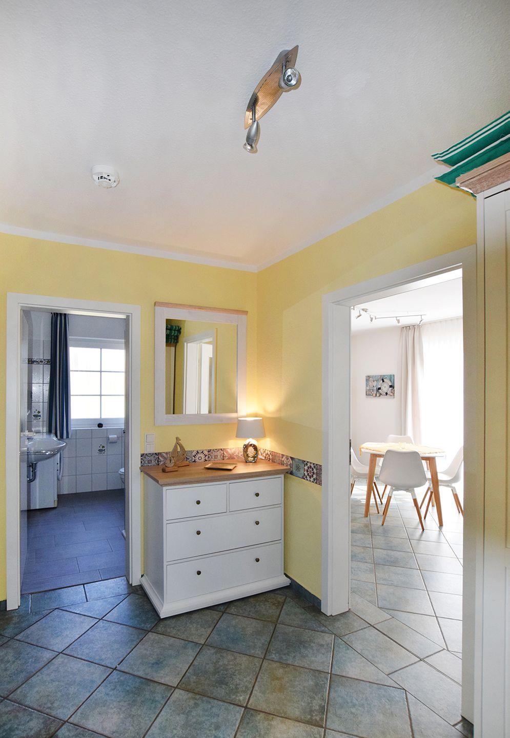 Diese einladende Ferienwohnung für bis zu 4 Personen bietet auf ca. 63 m² Wohnfläche viel Platz und Komfort. Im Erdgeschoss befinden sich ein großzügiger Wohnbereich, eine gut ausgestattete Einbauküche, ein Badezimmer sowie zwei Schlafzimmer. Die Süd-Terrasse lädt zum Entspannen und Genießen der Sonne ein.