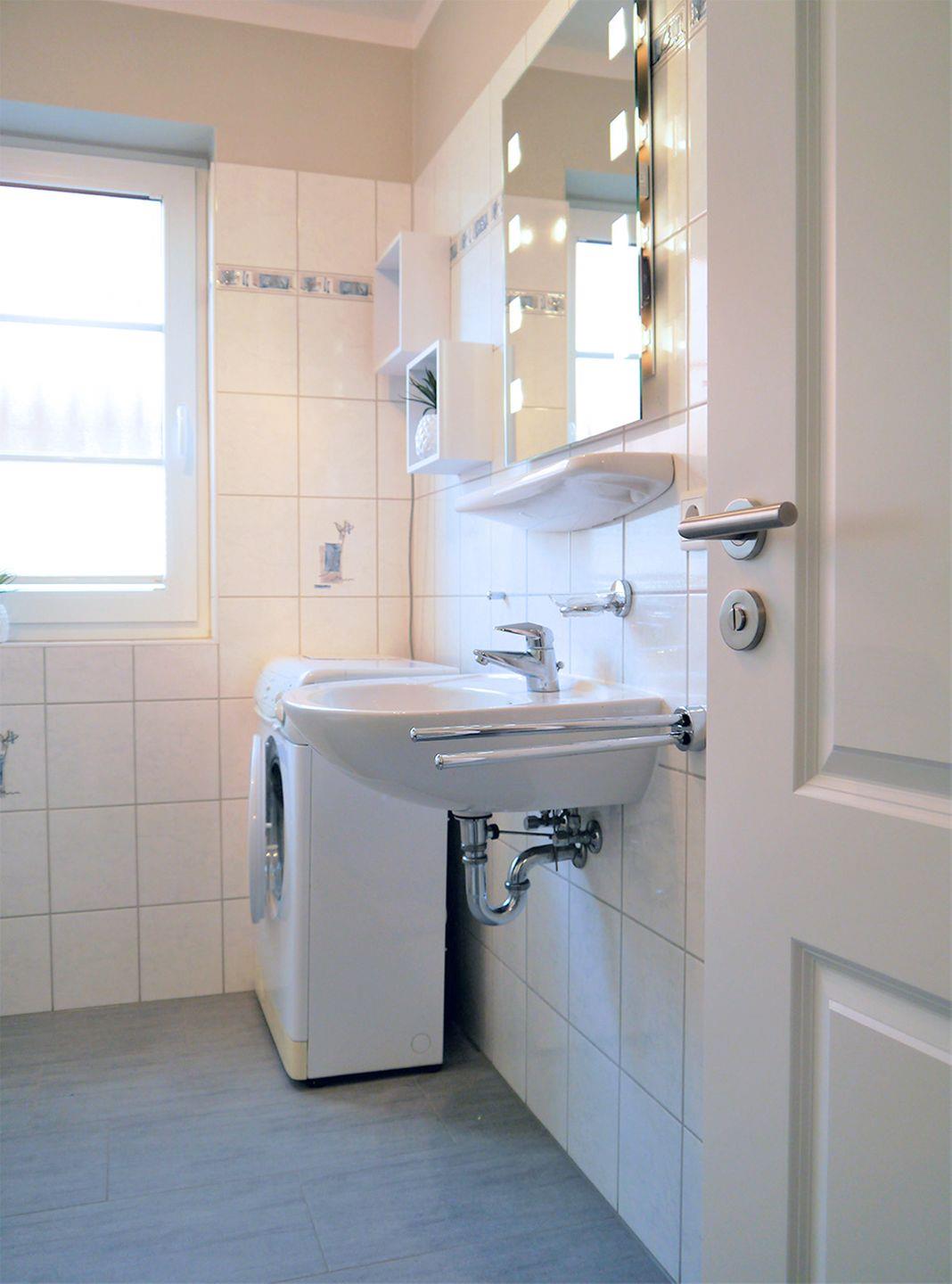 Das Badezimmer ist mit einer Dusche, einem WC und einer Waschmaschine ausgestattet. Die gesamte Wohnung ist mit Insektenschutzgittern versehen.