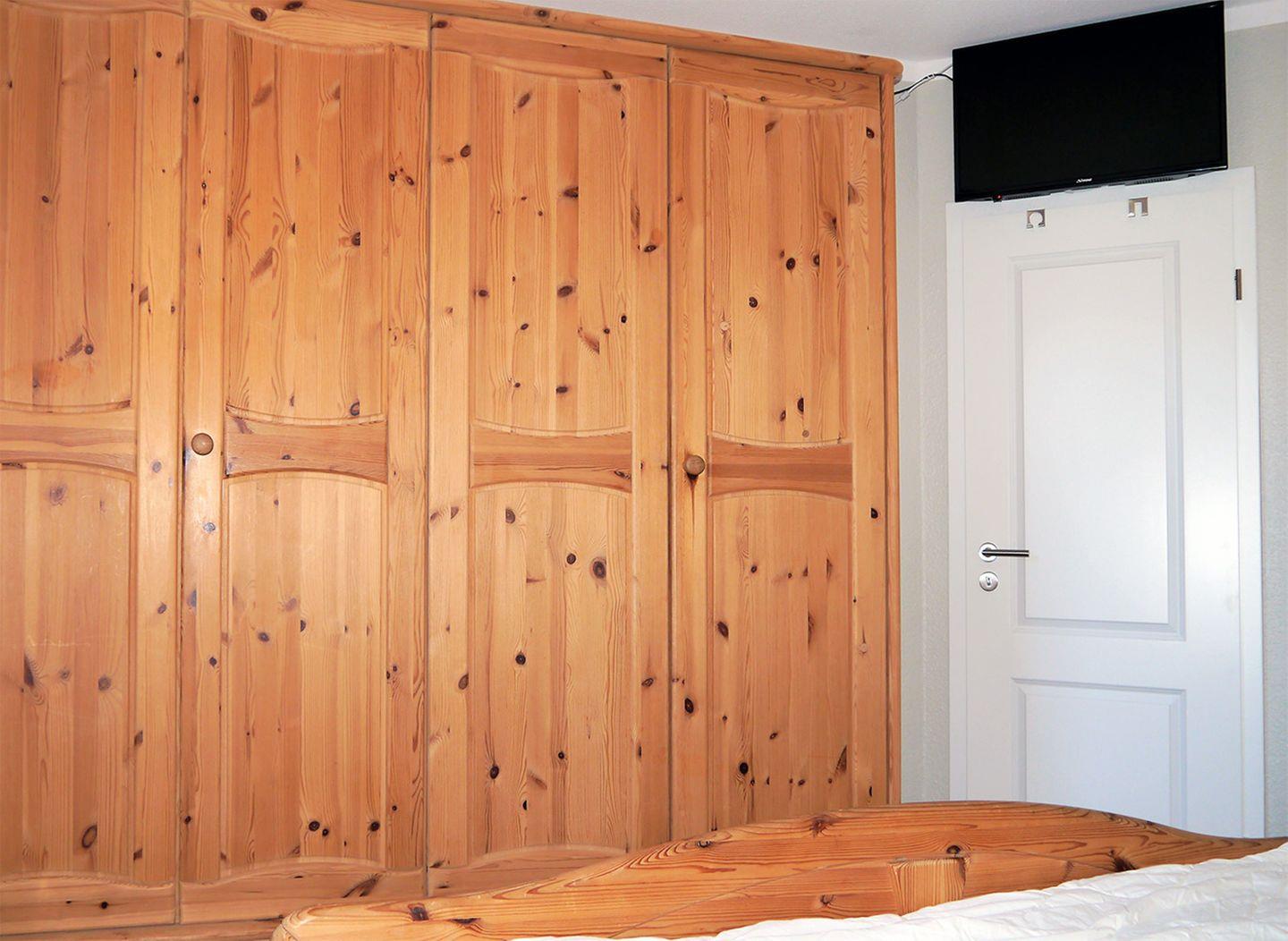 Die Ferienwohnung verfügt über zwei Schlafzimmer mit jeweils einem TV: Eines mit einem Doppelbett (180 x 200 cm, durchgehende Matratze) und eines mit zwei Einzelbetten (80 x 200 cm), ideal für Familien oder Freunde.