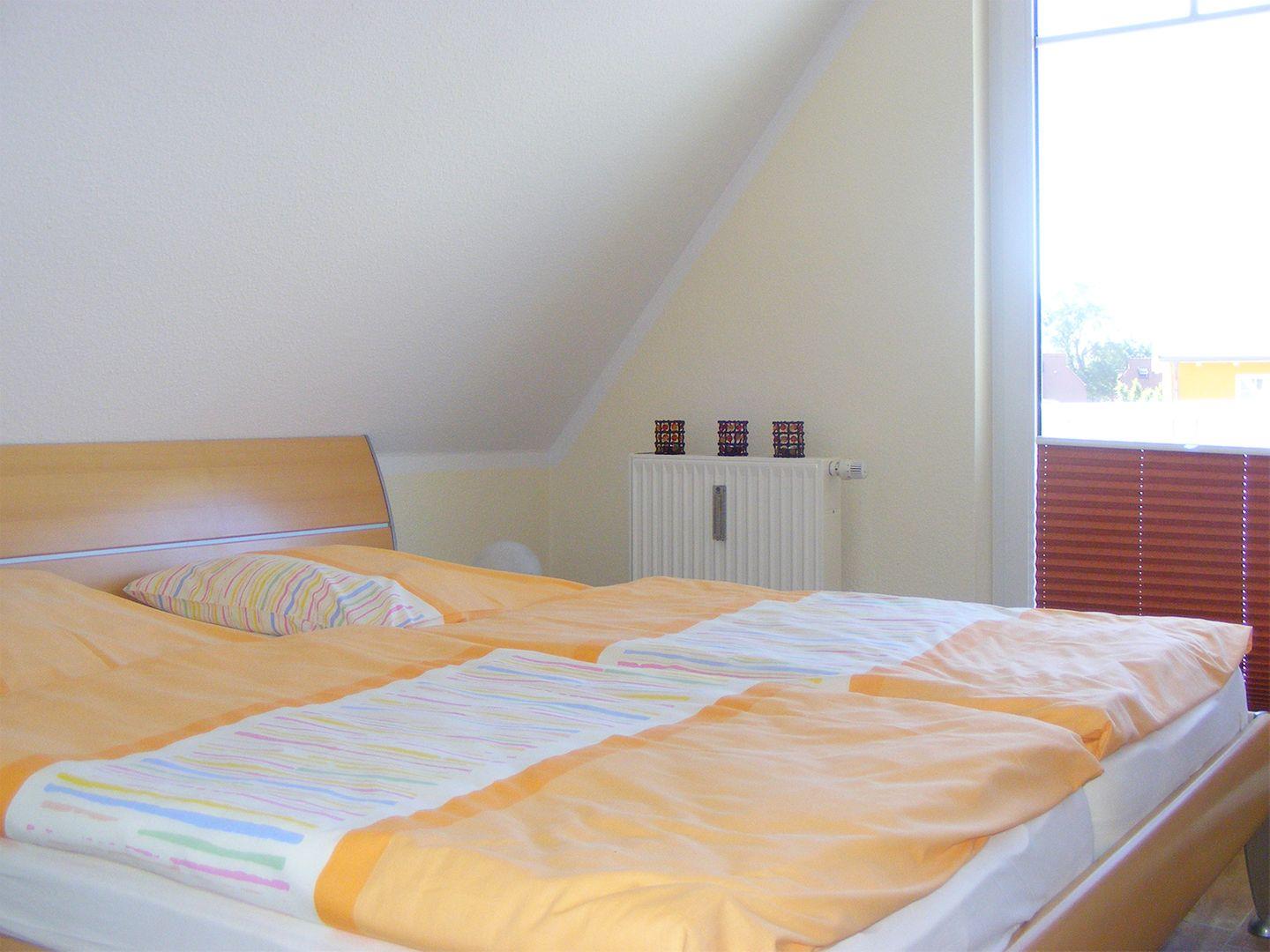 Ferienwohnung bis 4 Personen | ca. 56 m² Wohnfläche | OG Wohn-/Essbereich mit Küchenzeile, Abstellraum, Bad, 2 Schlafzimmer | Ost-Süd-Balkon | 1 Parkplatz | Wohn-/Essbereich Esstisch, Sitzgarnitur, Radio mit CD/DVD, SAT-TV | Küchenzeile Backofen, Geschirrspüler, Herd, Kaffeemaschine, Kühlschrank mit Gefrierfach, Mikrowelle, Toaster, Wasserkocher | Bad Dusche, WC | Waschmaschine | 2 Schlafzimmer SZ1 mit 1 Doppelbett (180 x 200 cm), SZ2 mit 2 Einzelbetten (80 x 200 cm) | Bettwäsche ab 7 ÜN inkl., Fahrradschuppen, Kinderhochstuhl, Reisebett ohne Bettwäsche, Waschmaschine