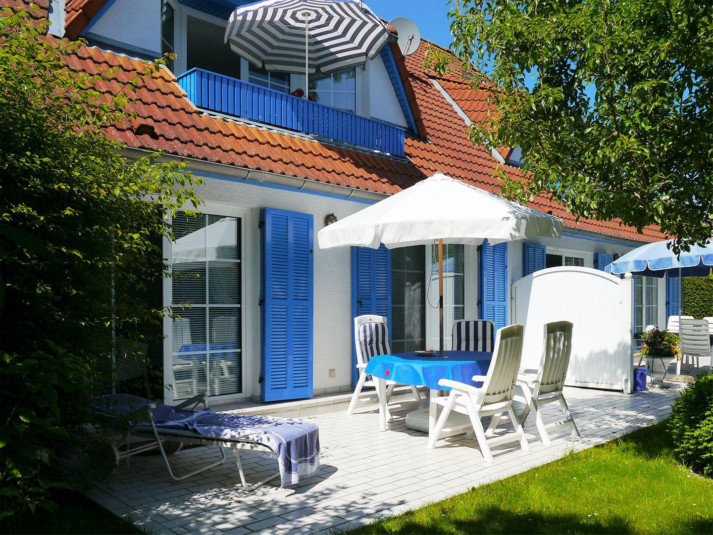 Die große Süd-Terrasse mit Gartenmöbeln bietet einen schönen Platz zum Entspannen im Freien.