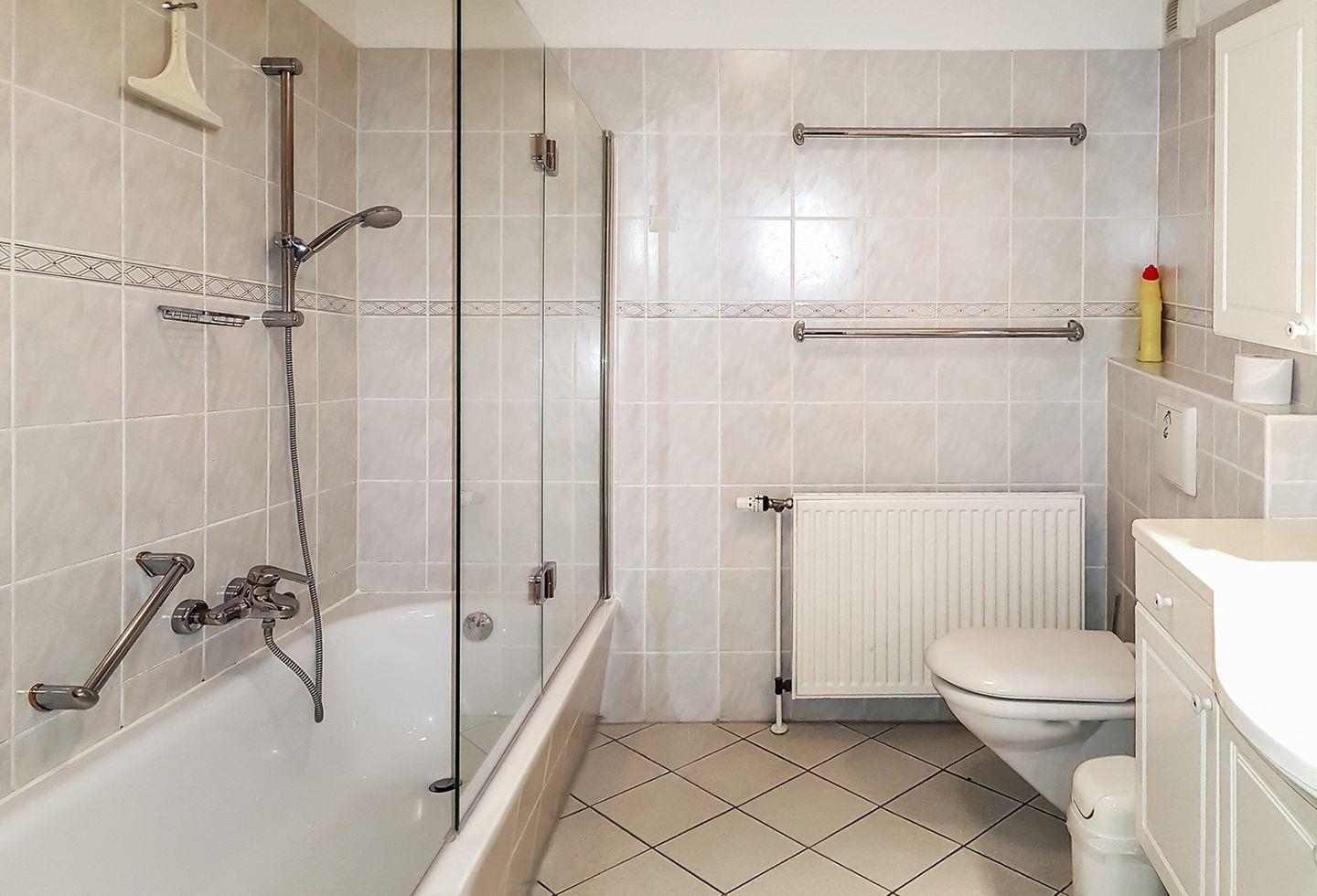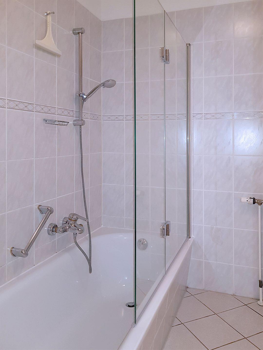 Im Badezimmer erwartet Sie ein Wannenbad mit Duschabtrennung und WC, zusätzlich gibt es ein separates Gäste-WC für mehr Komfort.