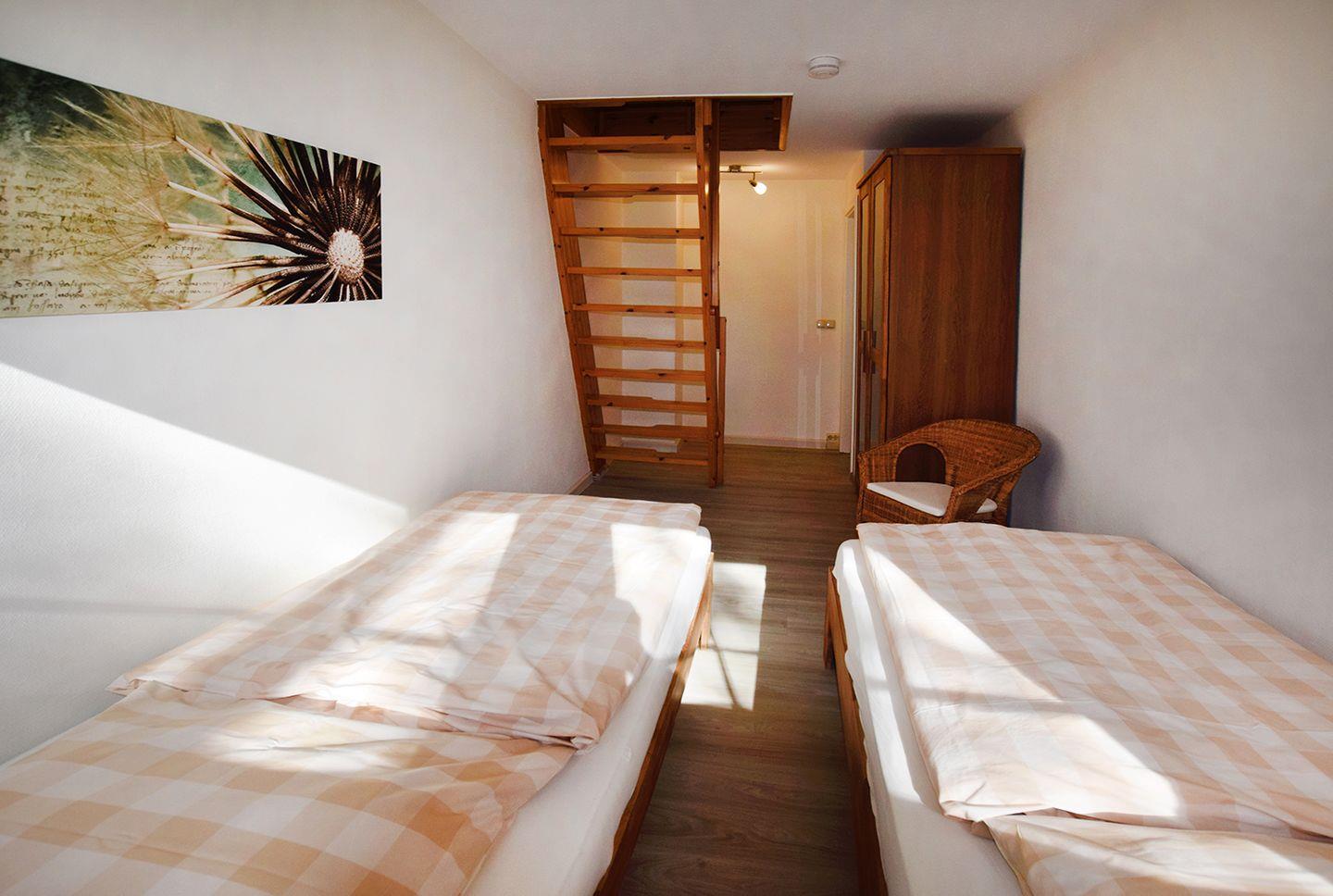 Im Dachgeschoss befindet sich ein Schlaf-/Wohnraum, der mit einem Schlafsofa (160 x 200 cm) ausgestattet ist und so zusätzlichen Schlafplatz bietet.
