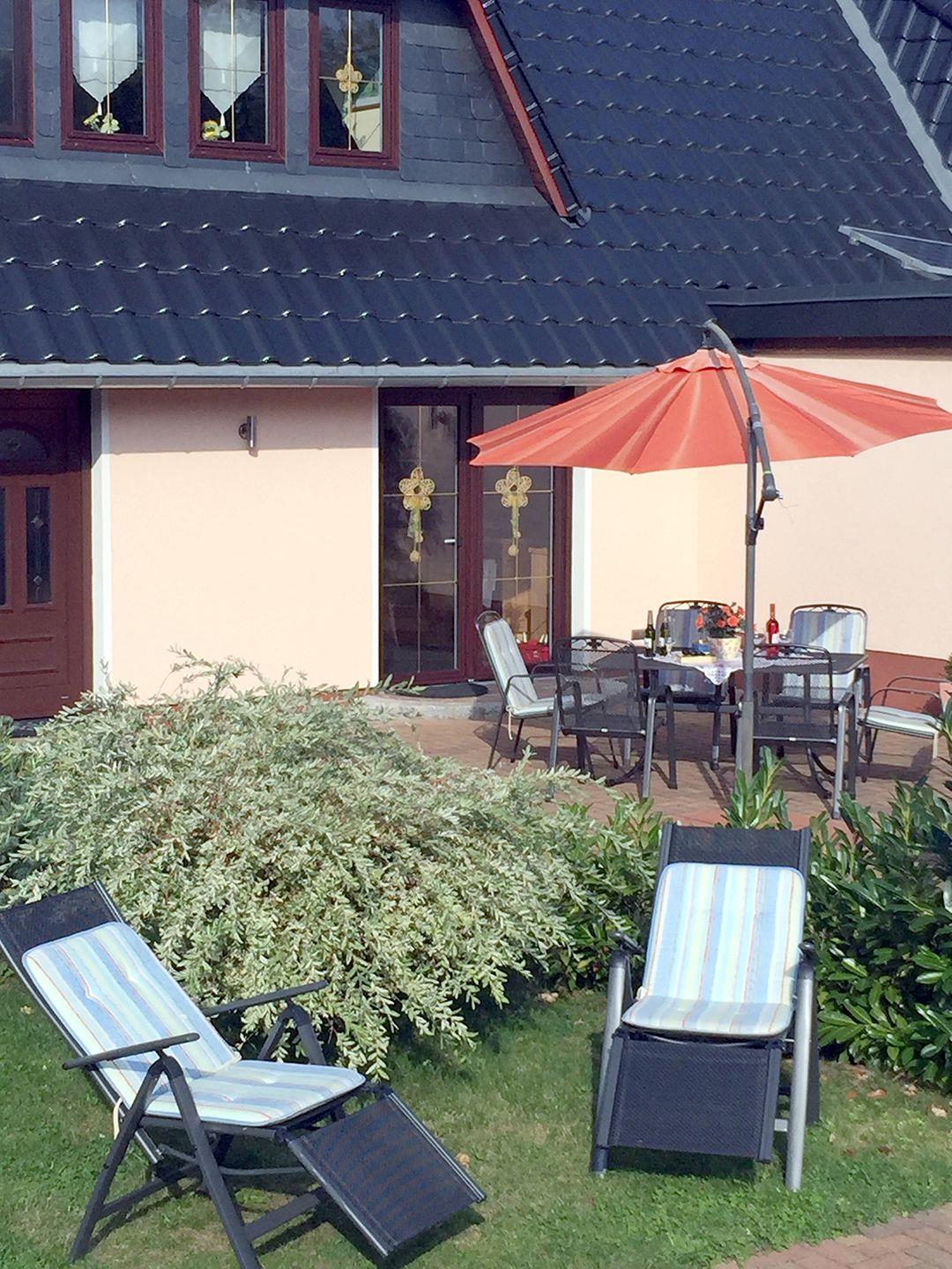 Ferienhaushälfte bis 6 Personen | Ca. 120 m2 Wohnfläche | EG Wohnküche mit Einbauküche, Abstellraum, Bad | DG Wohnbereich, 3 Schlafzimmer, Bad | Kamin | 2 Süd-West-Terrassen | 2 Parkplätze | Wohnküche Esstisch, Kamin, SAT-TV | Einbauküche Backofen, Esstisch, Geschirrhandtücher, Geschirrspüler, Herd/Cerankochfeld, Kaffeemaschine, Kühlschrank mit Gefrierfach, Mikrowelle, Toaster, Wasserkocher | Abstellraum Bügelbrett/-eisen, Waschmaschine | Wohnbereich Sitzgarnitur, Radio mit CD/DVD-Player, SAT-TV LCD-TV USB Anschluss | 2 Bäder Dusche, WC im EG | Badewanne, Dusche, WC im DG | + Gäste-WC | 3 Schlafzimmer SZ 1 mit 1 Doppelbett (180 x 200 cm), Safe, Schreibtisch | SZ 2 mit 1 Doppelbett (180 x 200 cm), SZ 3 (Kinderzimmer, Zugang von SZ 2) mit 1 Etagenbett (2 x 80 x 200 cm) | Edelstahlgrill, Fahrradschuppen, Finnische Sauna mit Münzautomat (2 € Münzen) mit separatem Ruheraum, Sportgeräten u. WC, Fußbodenheizung (EG), Gartennutzung, Kinderhochstuhl, Reisebett ohne Bettwäsche, Waschmaschine mit Münzautomat (1 € Münzen), WLAN