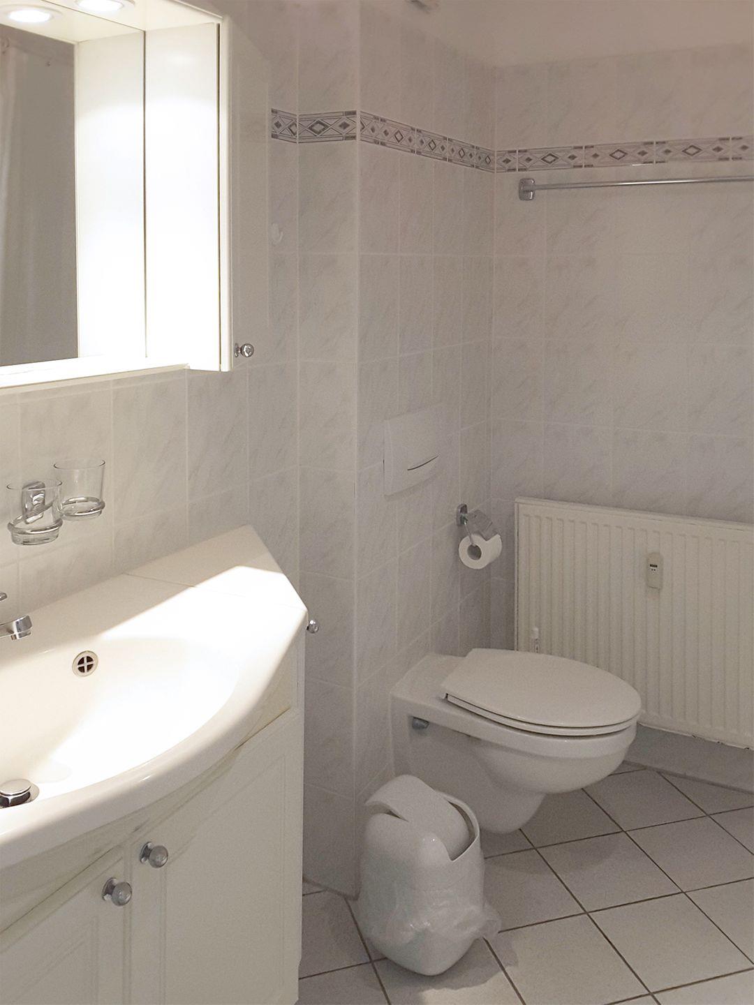 Die offene Küchenzeile ist vollständig ausgestattet und lässt keine Wünsche offen. Sie verfügt über einen Backofen, Herd, Geschirrspüler, Kaffeemaschine, Kühlschrank mit Gefrierfach, Toaster und Wasserkocher – ideal für die Zubereitung Ihrer Mahlzeiten. Die Wohnung bietet ein komfortables Badezimmer mit Badewanne, WC und einer Waschmaschine. Zusätzlich gibt es ein Gäste-WC.