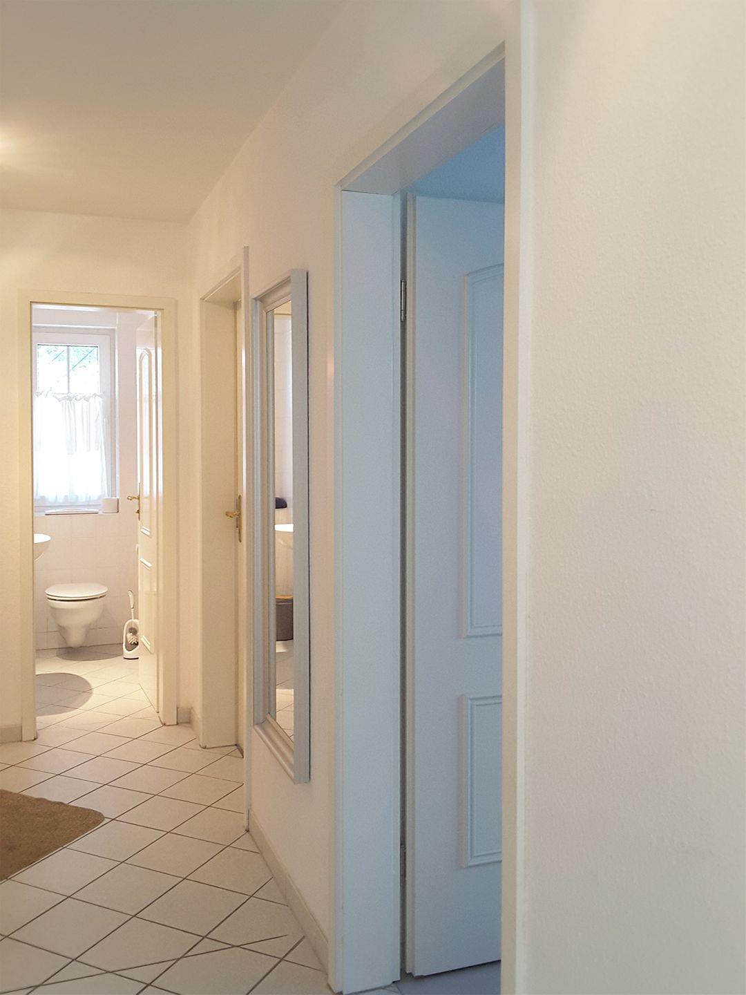 Ferienwohnung bis 4 Personen | Ca. 84 m2 Wohnfläche | EG Wohnbereich mit Küchenzeile, Bad, Gäste-WC, 2 Schlafzimmer | Süd-Terrasse | 1 Parkplatz | Wohnbereich Esstisch, Sitzgarnitur, Radio mit CD-Player, SAT-TV | Küchenzeile Backofen, Geschirrspüler, Herd, Kaffeemaschine, Kühlschrank mit Gefrierfach, Toaster, Wasserkocher | Bad Badewanne, WC, Waschmaschine | Gäste-WC | 2 Schlafzimmer, 1 Doppelbett (180 x 200 cm) | 1 Doppelbett (180 x 200 cm) | WLAN | Haustier möglich