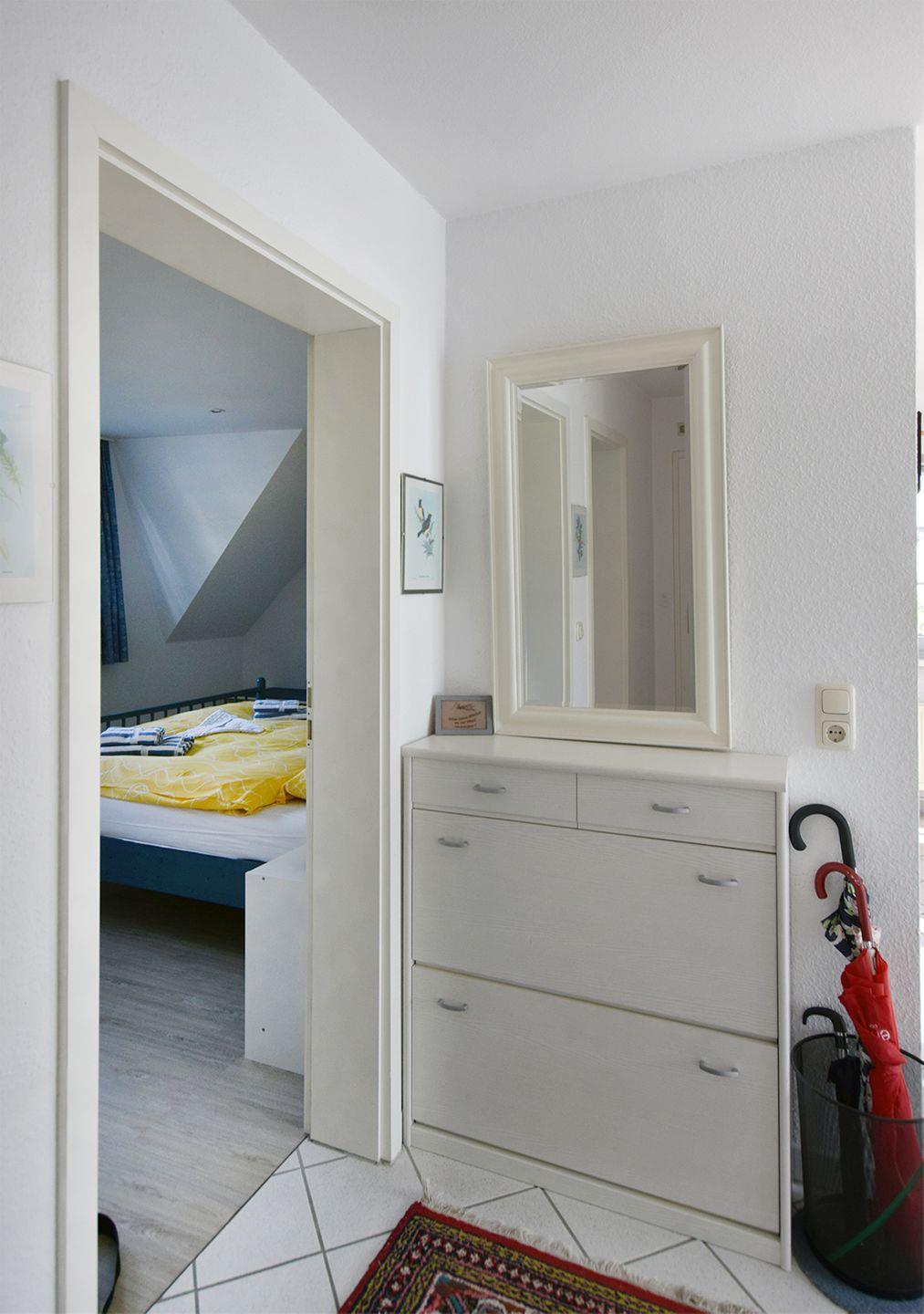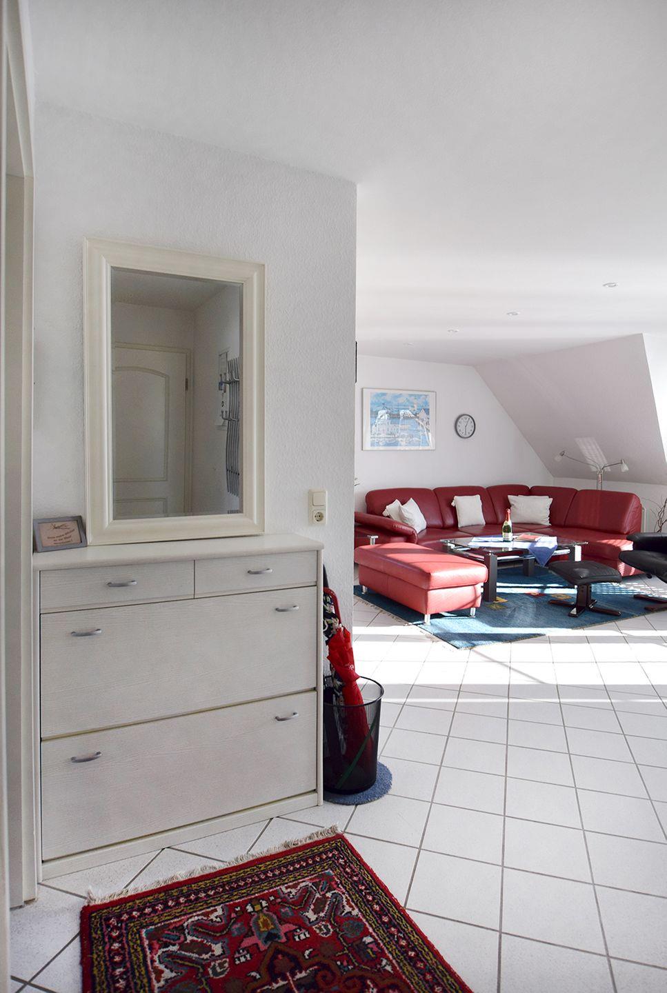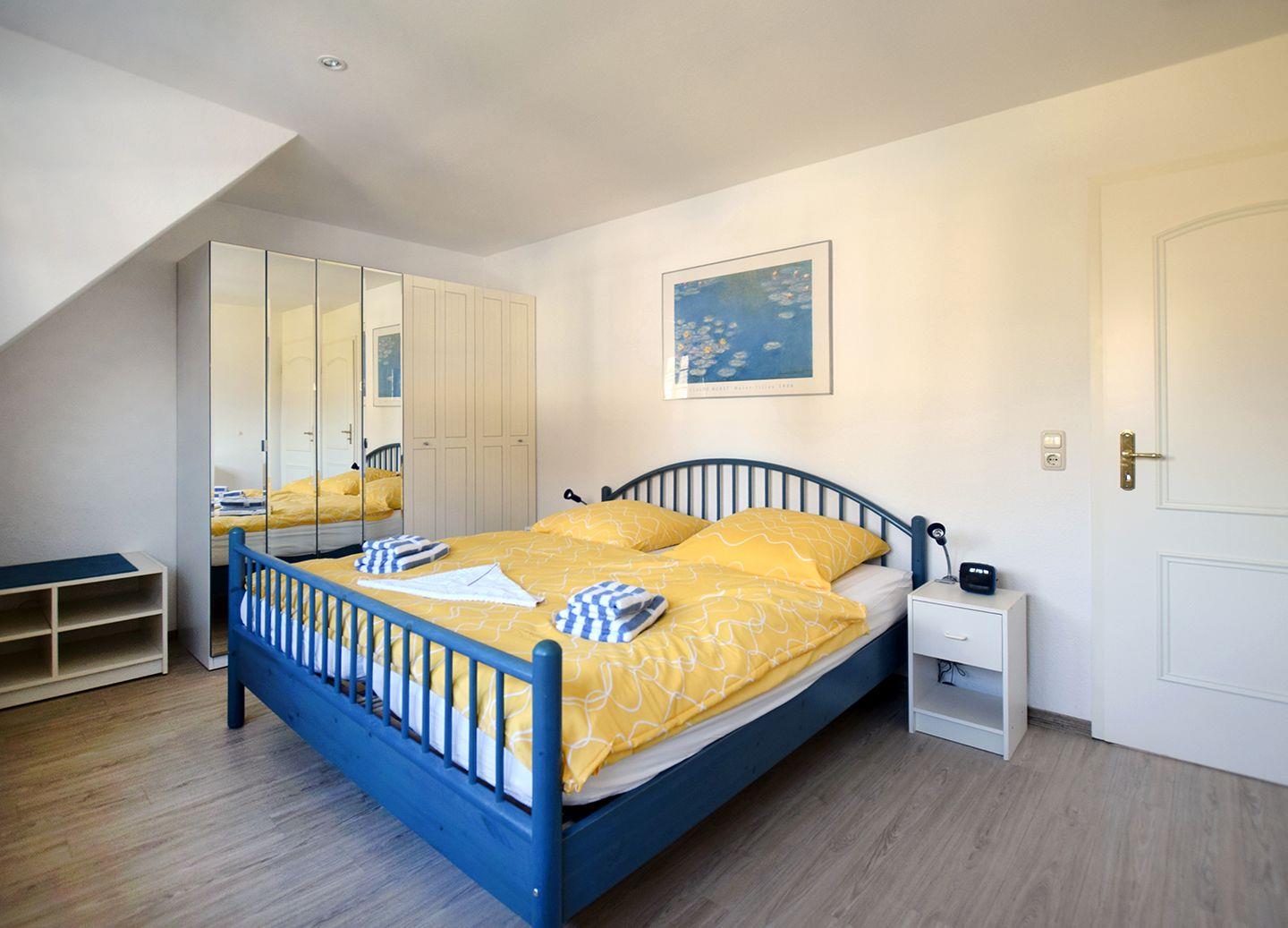 Ferienwohnung bis 4 Personen | ca. 90 m² Wohnfläche | OG 1 Schlafzimmer mit Doppelbett (180 x 200 cm) | Wohnbereich mit Esstisch, Sitzgarnitur, Radio mit CD-Player, SAT-TV | Küchenzeile mit Backofen, Geschirrspüler, Ceran-Herd, Espressomaschine, Kaffeemaschine, Kühlschrank mit Gefrierfach, Mikrowelle, Toaster, Wasserkocher | Bad mit Badewanne, WC | im DG Dusche, WC, Waschmaschine | 1 Schlafzimmer mit 2 Einzelbetten (90 x 200 cm) | West-Loggia | 1 Parkplatz | Bettwäsche und Handtücher ab 7 Übernachtungen inklusive | Reisebett, WLAN vorhanden