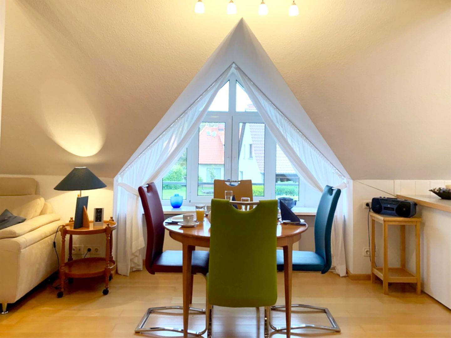 Die gemütliche Ferienwohnung für bis zu 4 Personen befindet sich im Obergeschoss eines Hauses im Kapitänsgarten und bietet auf ca. 57 m² alles, was für einen erholsamen Aufenthalt nötig ist. Die Unterkunft verfügt über einen großzügigen Wohnbereich mit Esstisch, Sitzgarnitur sowie einem Radio mit CD-Player und SAT-TV. Die Einbauküche ist modern ausgestattet mit Backofen, Geschirrspüler, Herd, Kaffeemaschine, Kühlschrank mit Gefrierfach, Mikrowelle, Toaster und Wasserkocher. Das Badezimmer ist mit einer Dusche, einem WC und einer Waschmaschine ausgestattet.