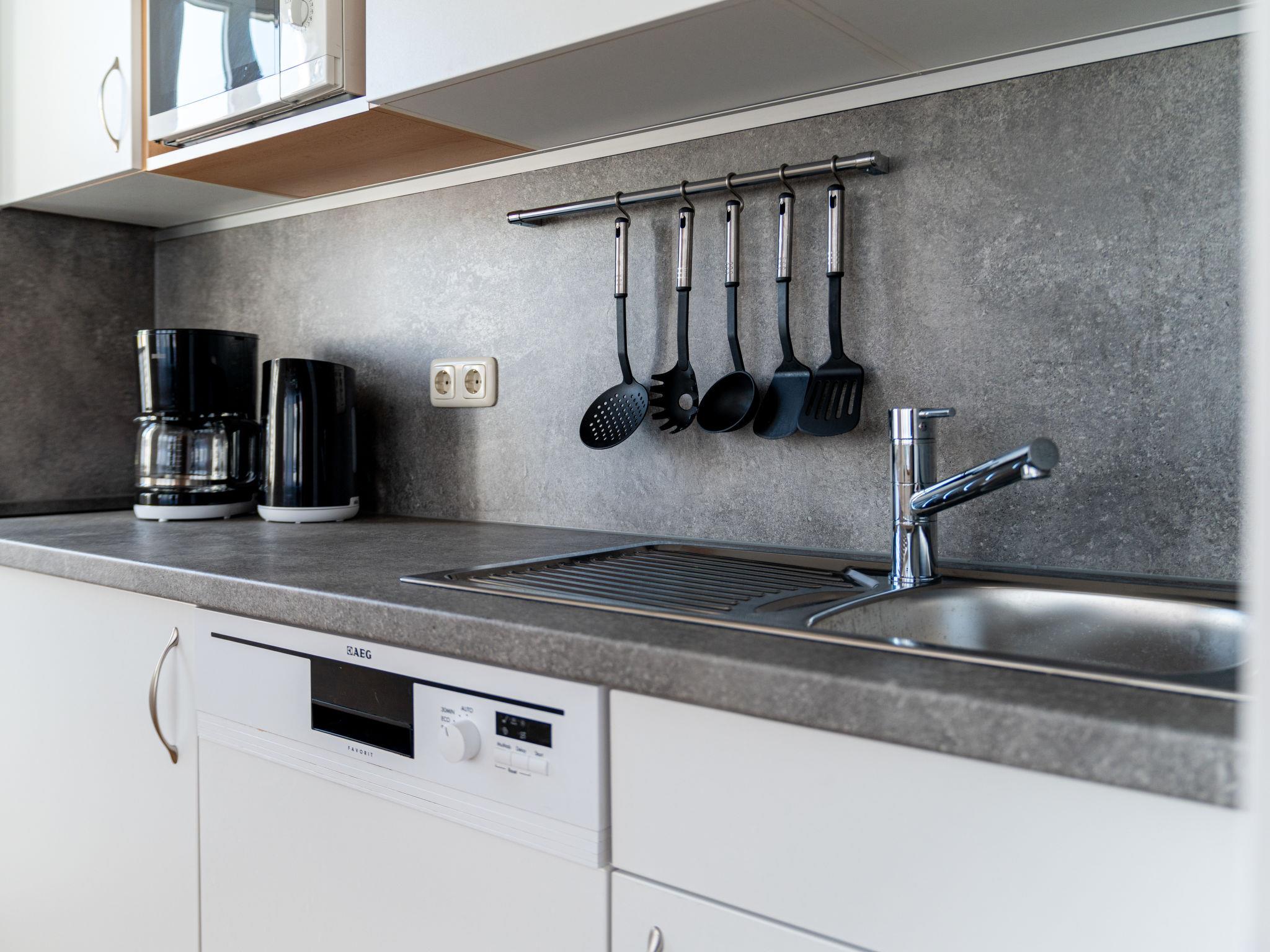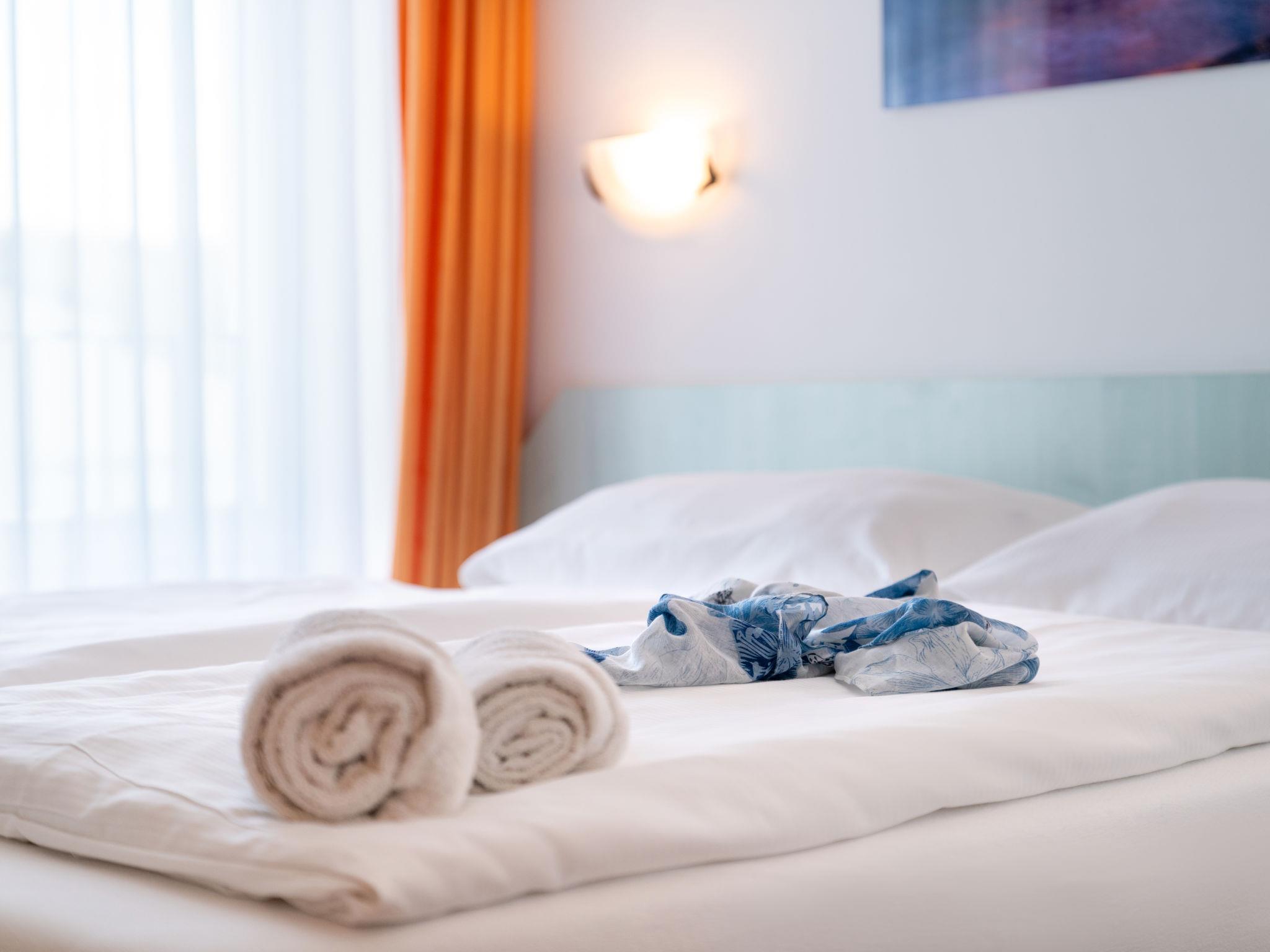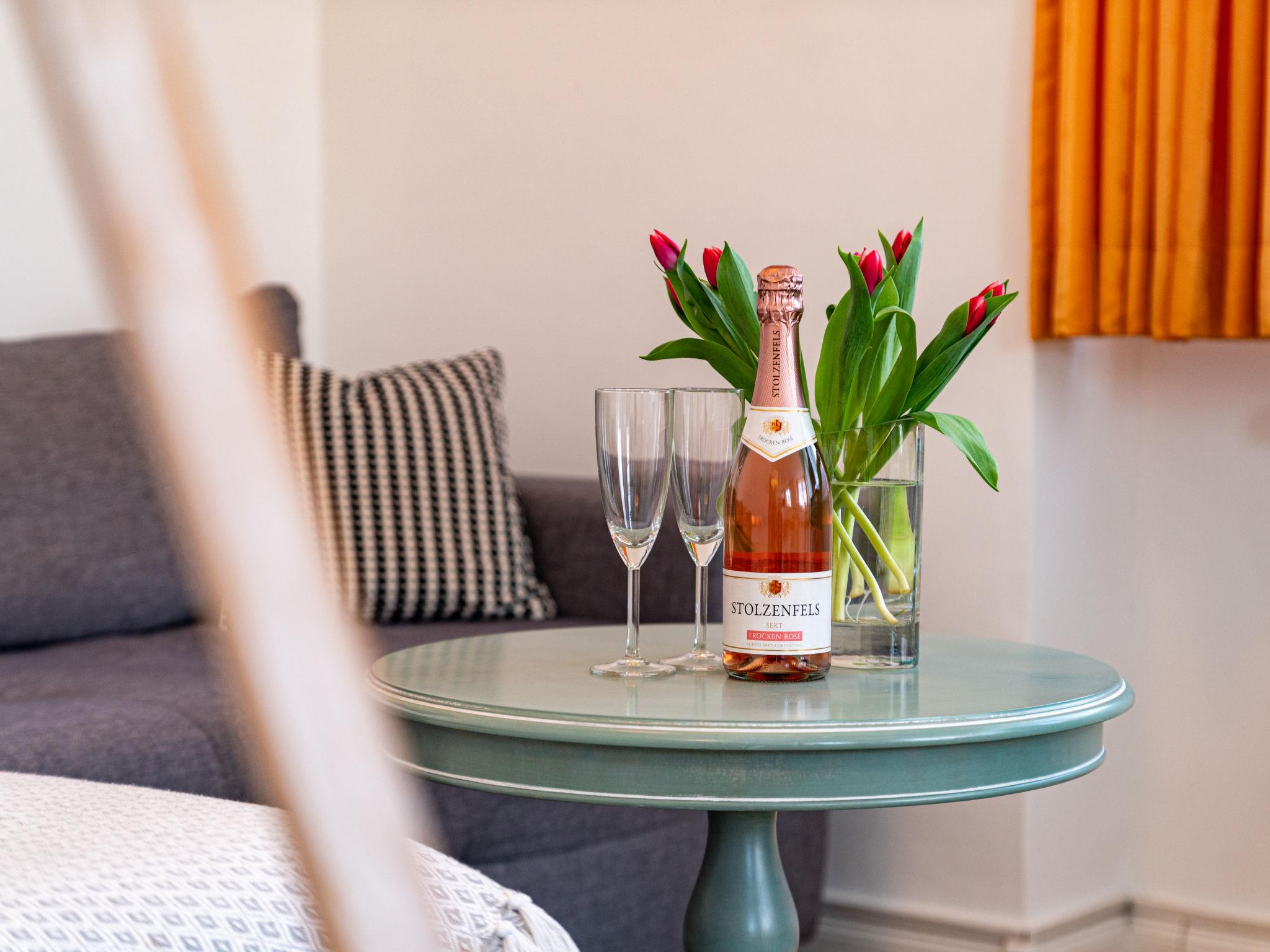 2-room apartment 42 m2, on the upper floor. Beautiful and tasteful furnishings: living/sleeping room with 1 double sofabed (145 cm, length 210 cm), dining table and satellite TV. 1 double bedroom. Kitchenette (dishwasher, 2 ceramic glass hob hotplates, kettle, microwave, electric coffee machine). Shower/WC. Gas heating. Facilities: baby cot (extra). Internet (WiFi, free). Parking (extra, 1 car). Please note: non-smokers only. Maximum 1 pet/ dog allowed. Smoke alarm, fire extinguisher.