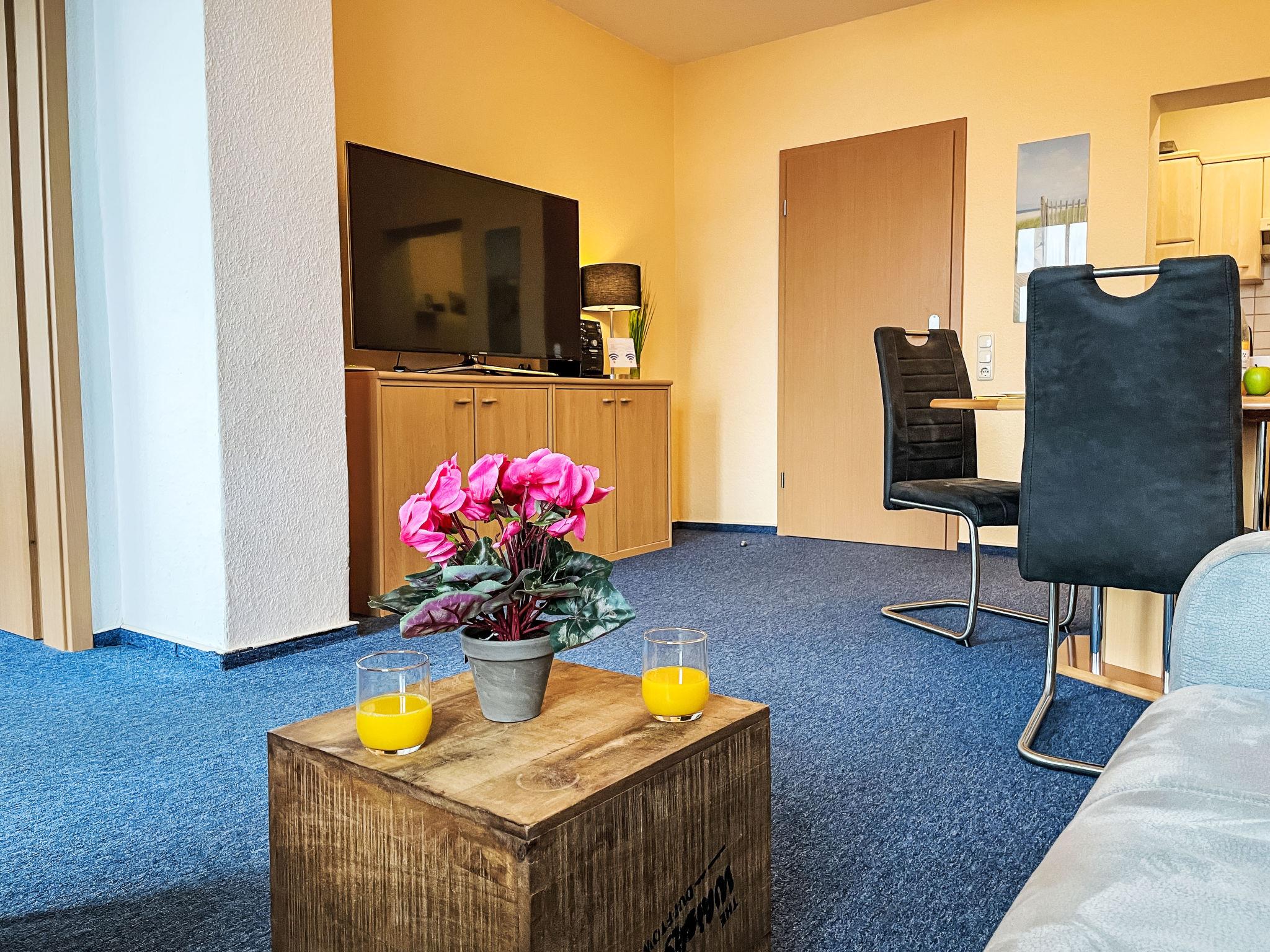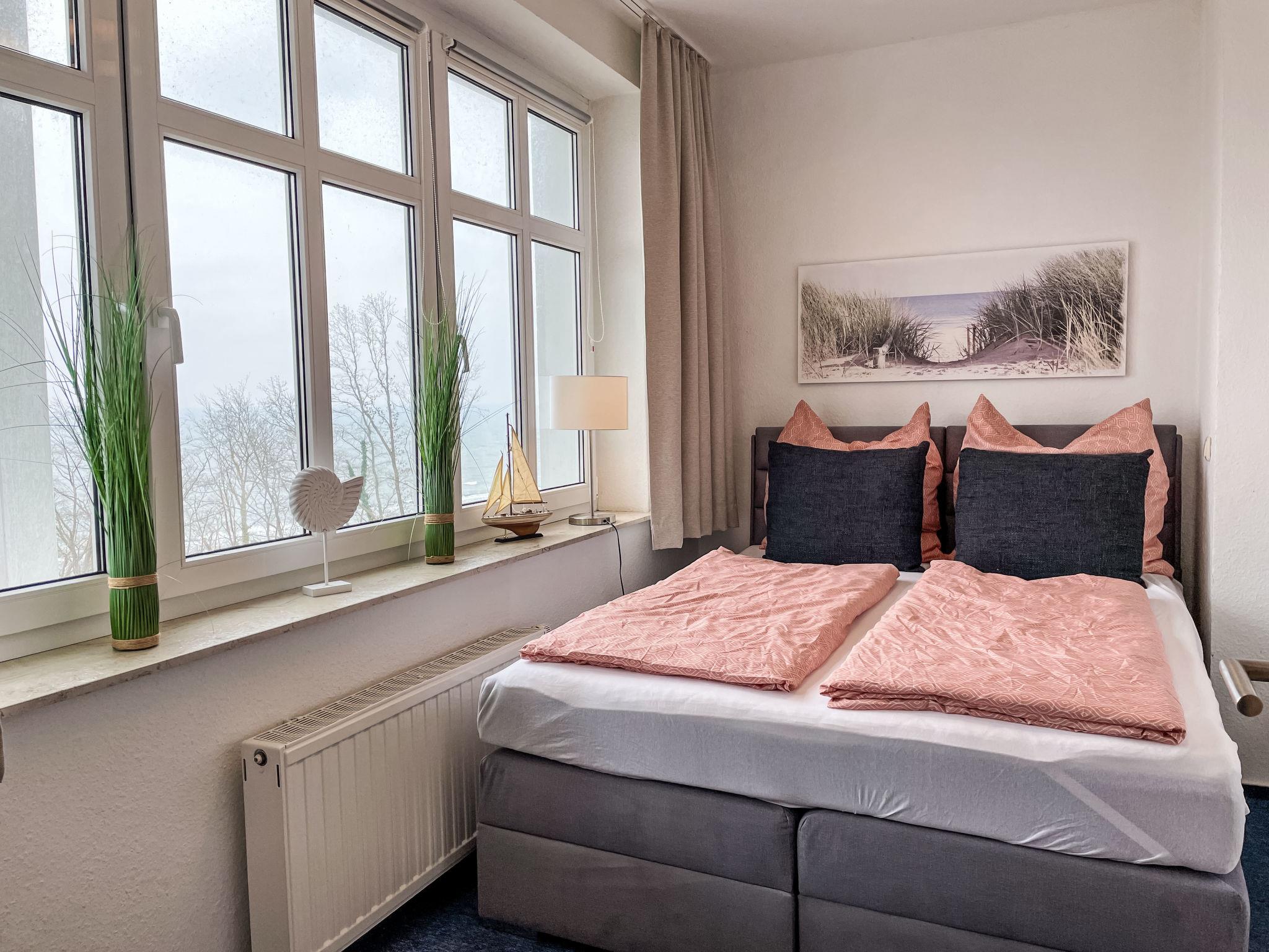"Ostseeblick", 3-room apartment 60 m2 on 2nd floor. Beautiful and cosy furnishings: living/dining room with dining table and satellite TV (flat screen). Exit to the balcony. 1 room with 1 double bed (180 cm, length 200 cm), satellite TV. 1 room with panoramic window with 1 double bed (160 cm, length 200 cm), satellite TV. Open kitchen (oven, dishwasher, 4 ceramic glass hob hotplates, toaster, kettle, microwave, freezer, electric coffee machine). Shower/WC. Heating. Large balcony, north-east facing position. Balcony furniture. Marvellous panoramic view of the sea. Facilities: hair dryer. Internet (WiFi, free). Parking space n 11 (1 car) at the house. Please note: suitable for families. Non-smokers only. Maximum 1 pet/ dog allowed. Smoke alarm, fire extinguisher.