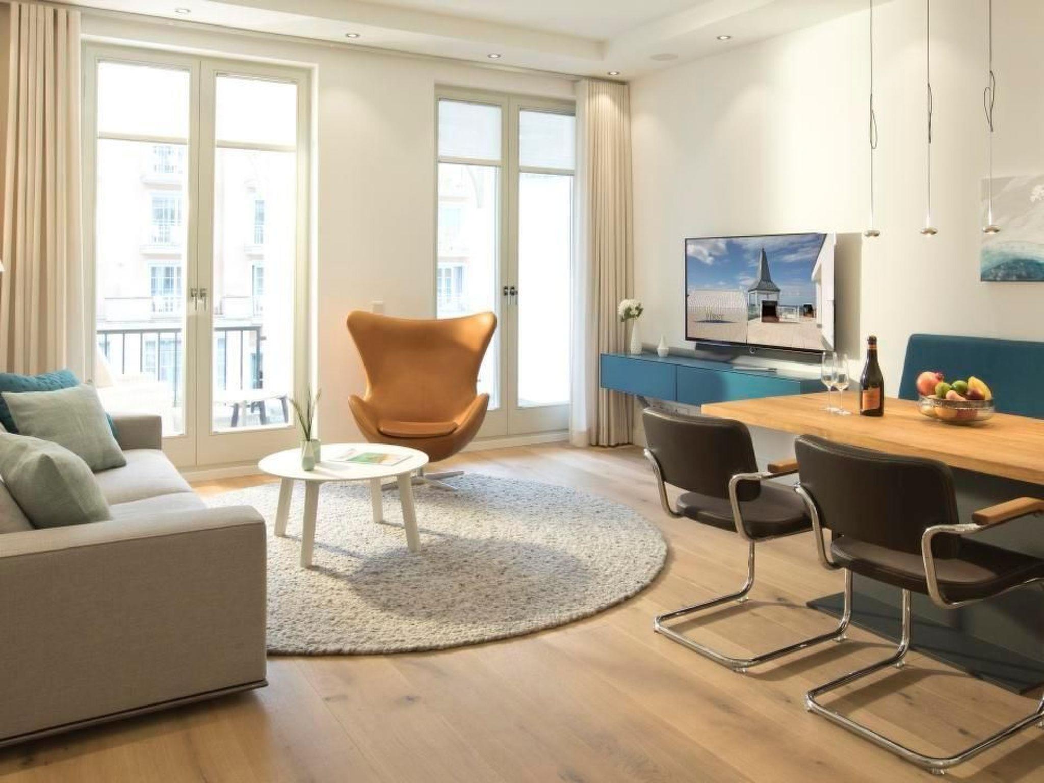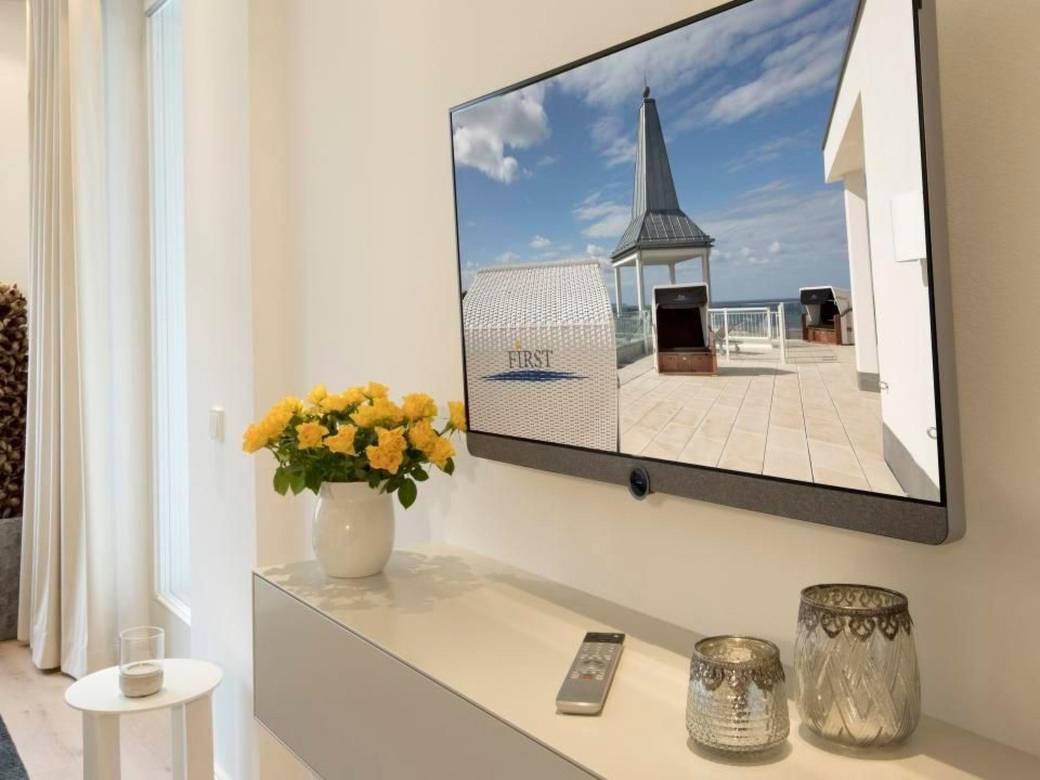 The sofa with a view of the Loeve flat screen TV is large and cosy and invites you to linger. The multi-room Sonos system, which you can connect to via Bluetooth, creates a cosy atmosphere in the evening.