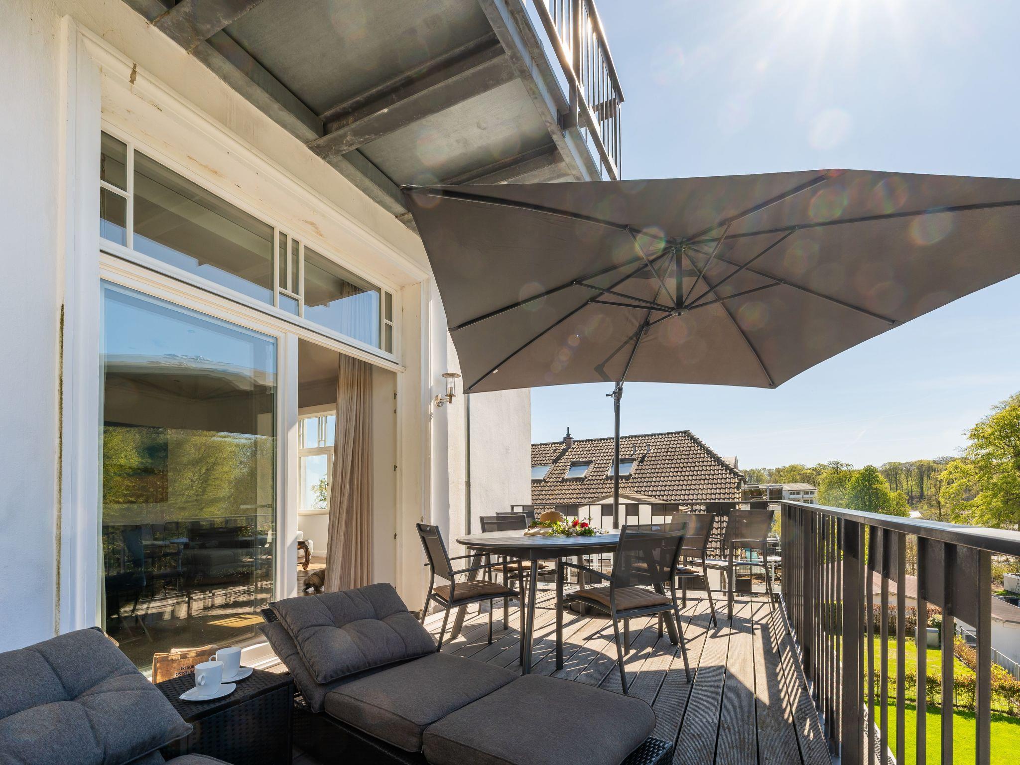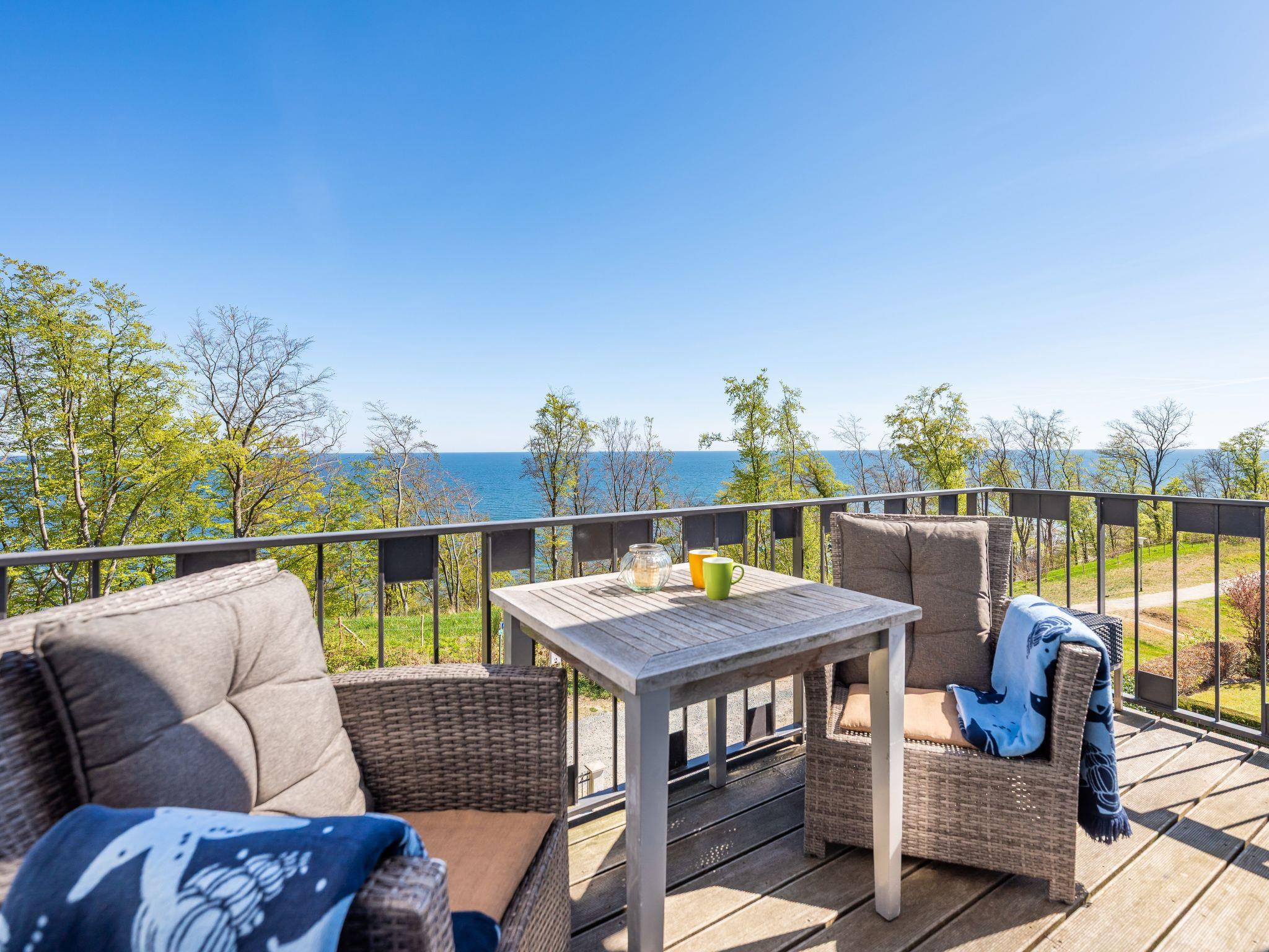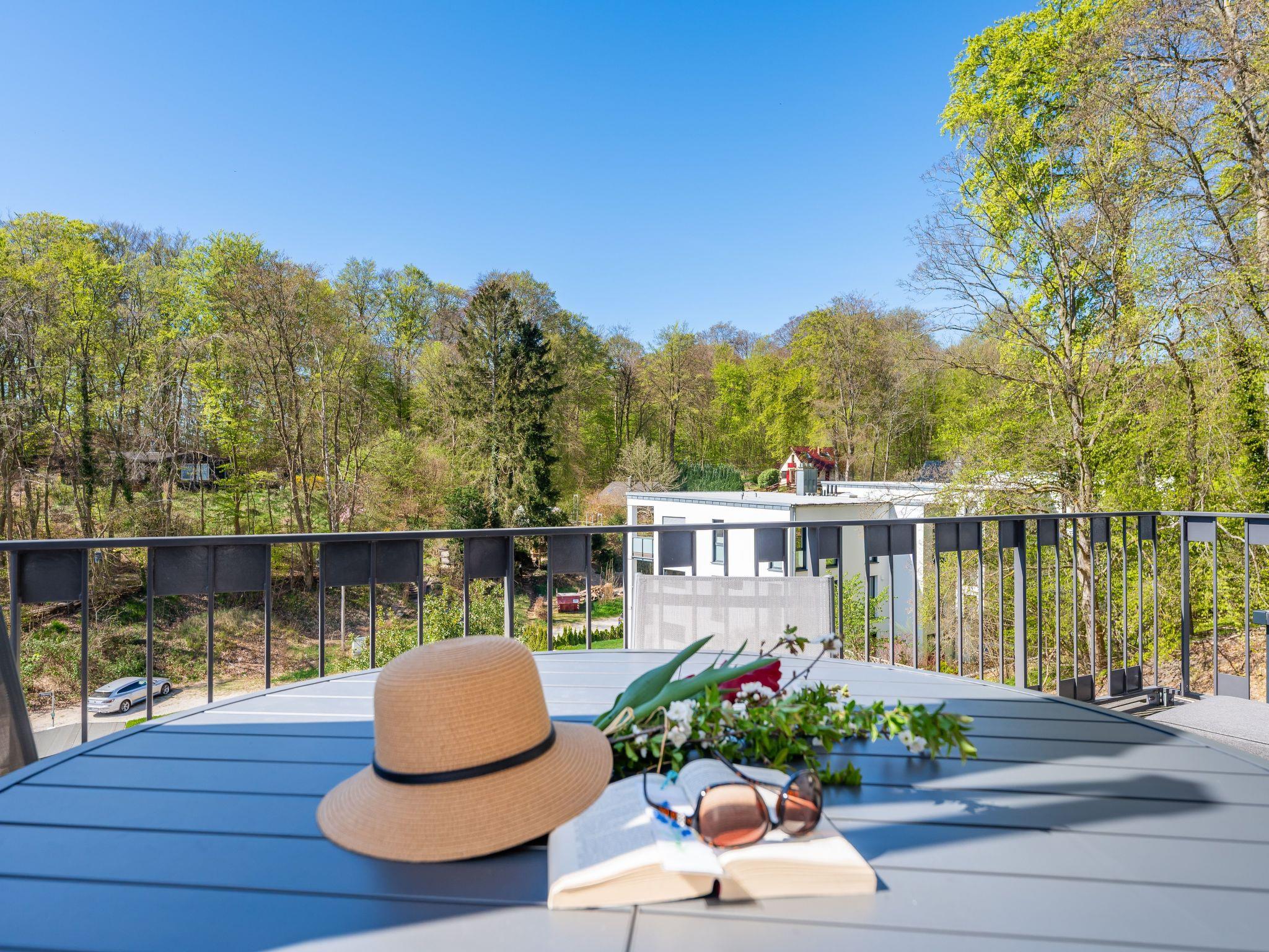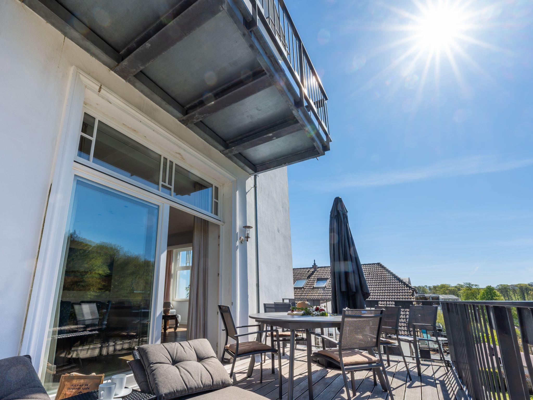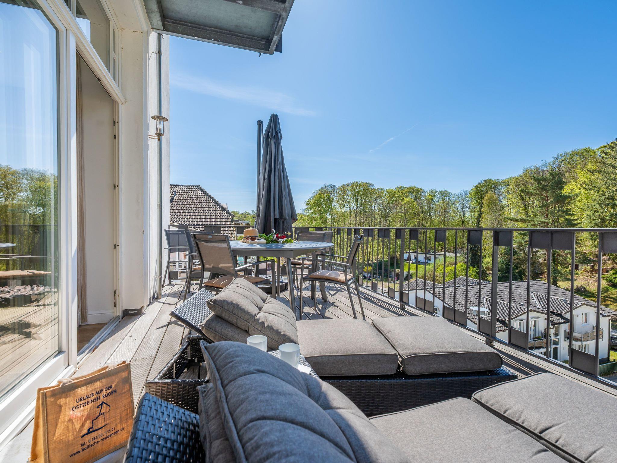 A beautiful loggia with sofa and sea view as well as a spacious balcony with a view of the greenery invite you to relax.
