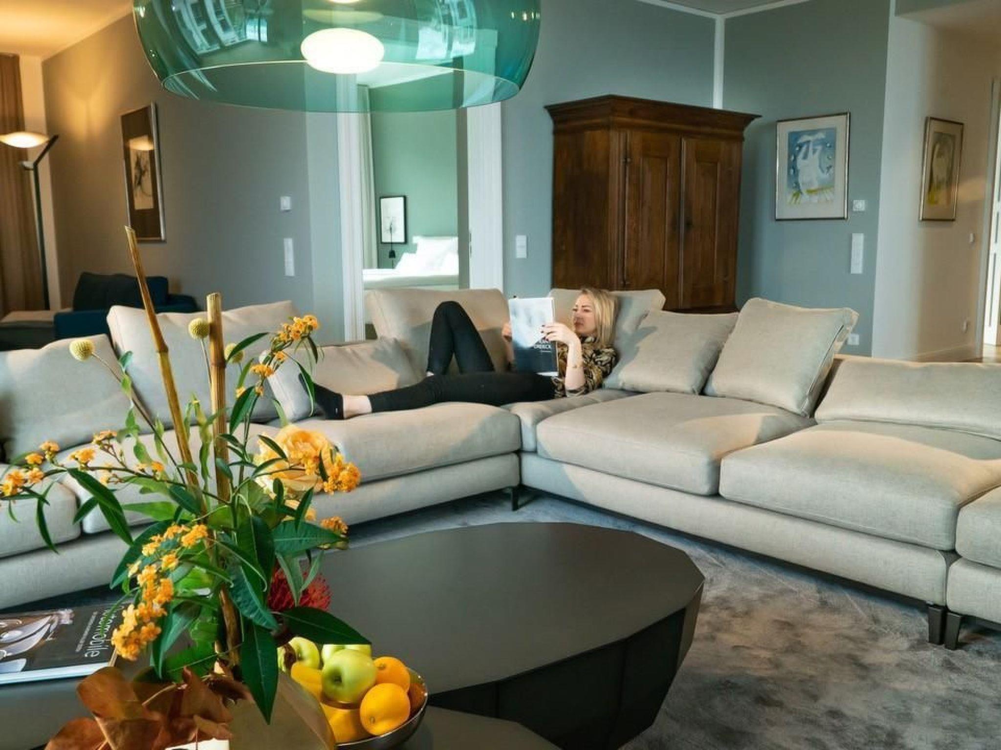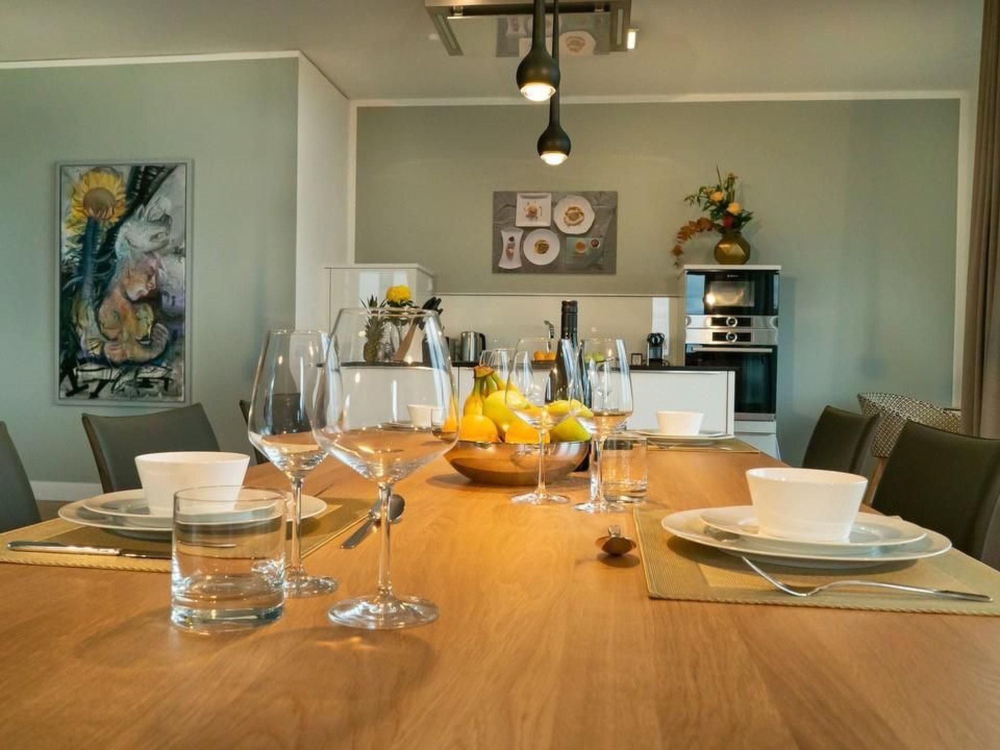 The very spacious living/dining area (approx. 97 m²) is equipped with a high-quality kitchen with cooking island, natural stone worktop and Bosch appliances. The living area also features luxurious furniture by Cassina, Minotti, B&B italia, Zanotta, Dedon and Thonet, among others.