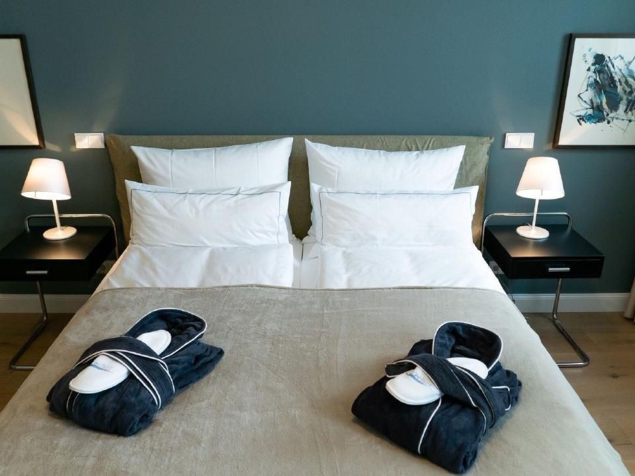 "Meer & Mehr" has two bedrooms, which are furnished with box-spring beds from Schramm and wardrobes from Poliform. One bedroom has an en-suite bathroom with a very large, floor-level shower. A further bathroom with bath and shower is located opposite the second bedroom. The bathrooms feature high-quality Dornbracht fittings and elegant bathroom objects from Villeroy & Boch.