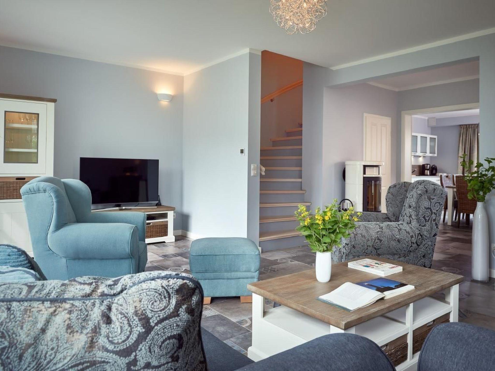 All bedrooms have high-quality box-spring beds and a TV. The kitchen is equipped with high-quality appliances. In the living room you will find a fireplace and a modern TV as well as a BOSE soundbar for cosy film evenings, should the weather take a turn for the worse. The entire house has underfloor heating and can therefore be kept at a pleasant temperature at all times.