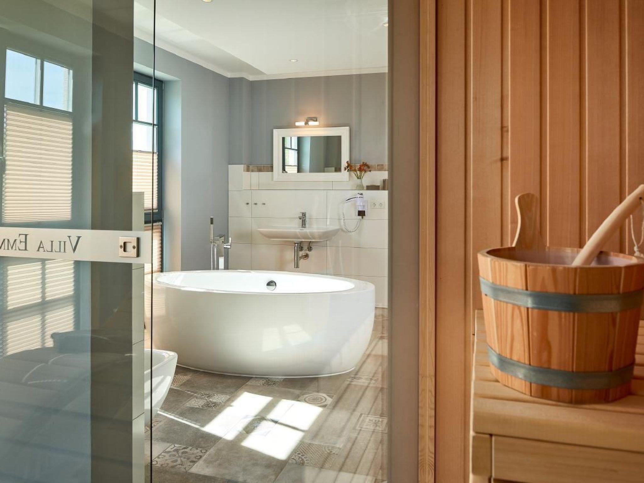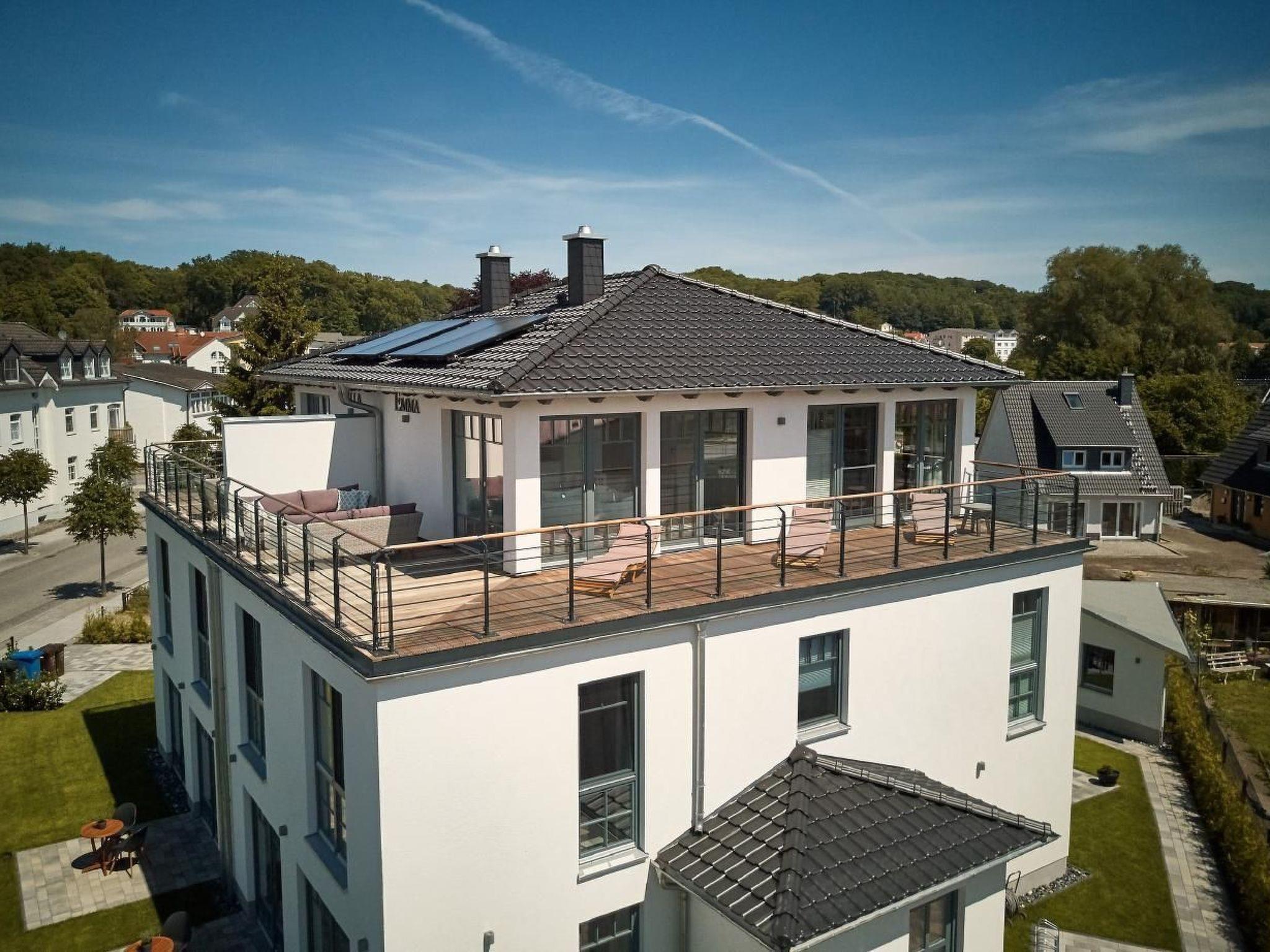 The villa is furnished in a modern to luxurious style. Thanks to the high level of comfort, you will immediately feel at home here. There are 2 full floors and a penthouse with an indoor whirlpool, 40 m² roof terrace with views over Sellin, a large sauna with glass front and views of the natural surroundings, an extra relaxation area with loungers, fireplace, Wi-Fi throughout the villa and much more.