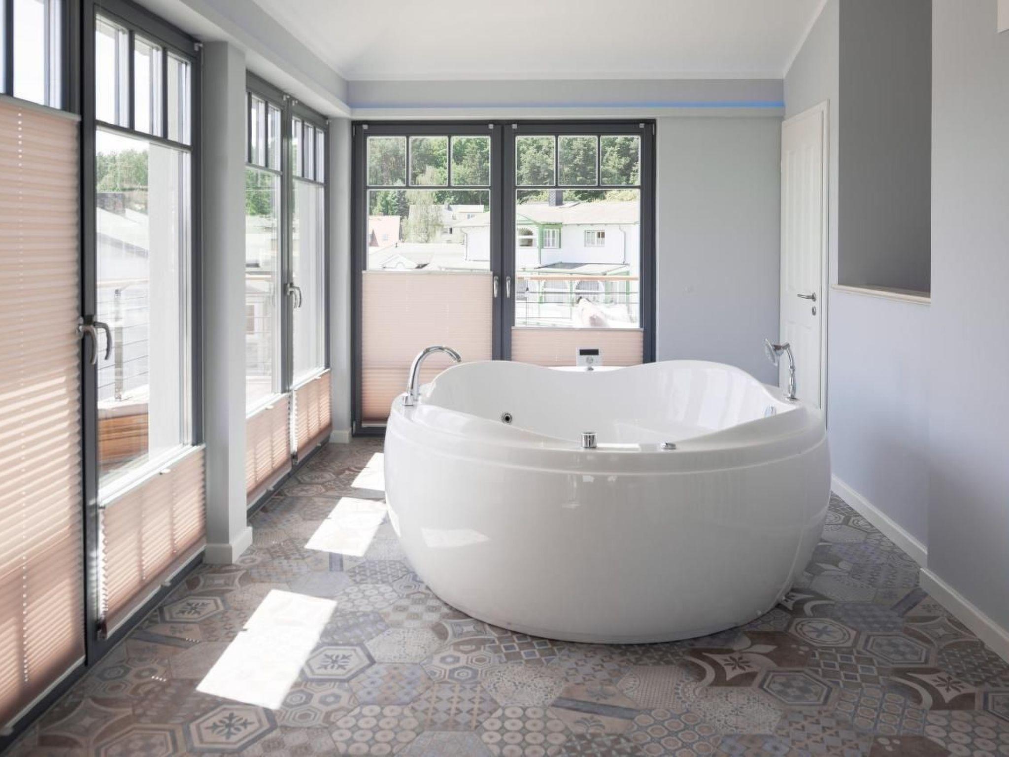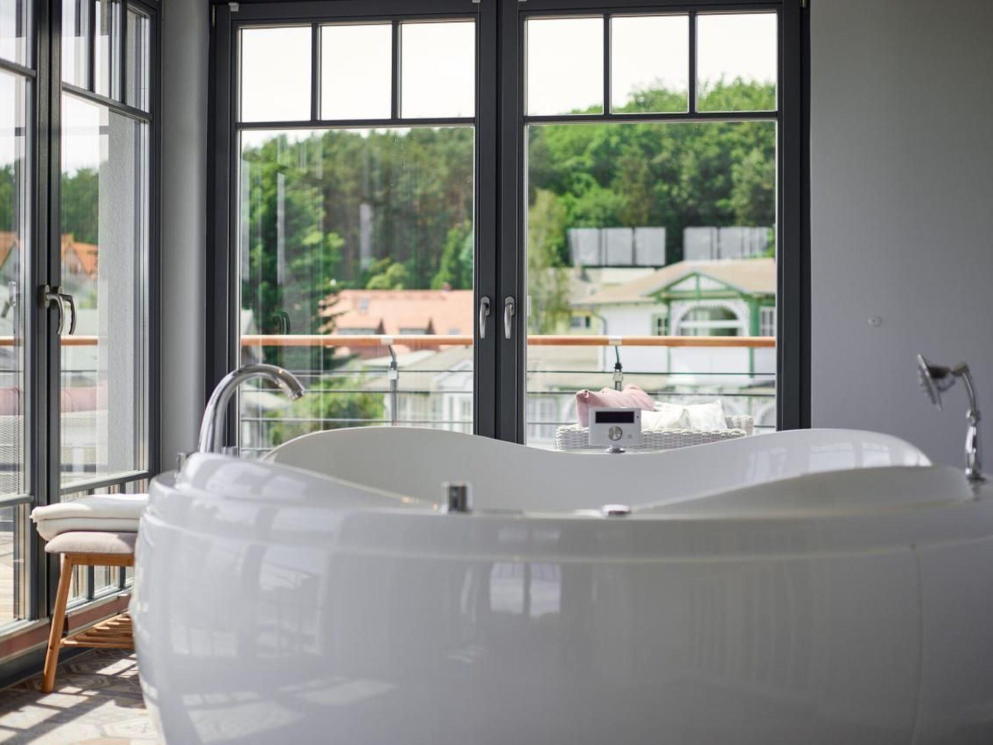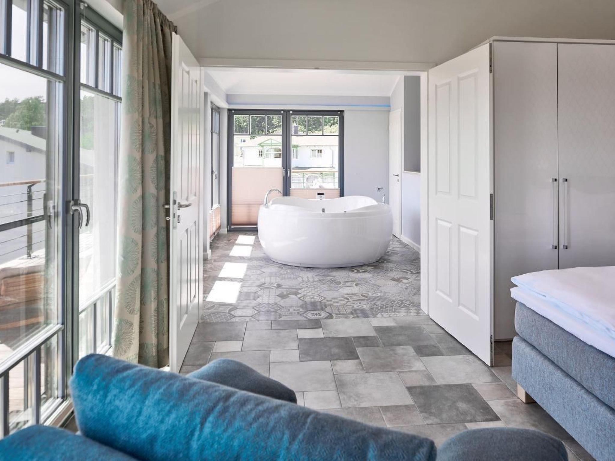 The villa is furnished in a modern to luxurious style. Thanks to the high level of comfort, you will immediately feel at home here. There are 2 full floors and a penthouse with an indoor whirlpool, 40 m² roof terrace with views over Sellin, a large sauna with glass front and views of the natural surroundings, an extra relaxation area with loungers, fireplace, Wi-Fi throughout the villa and much more.