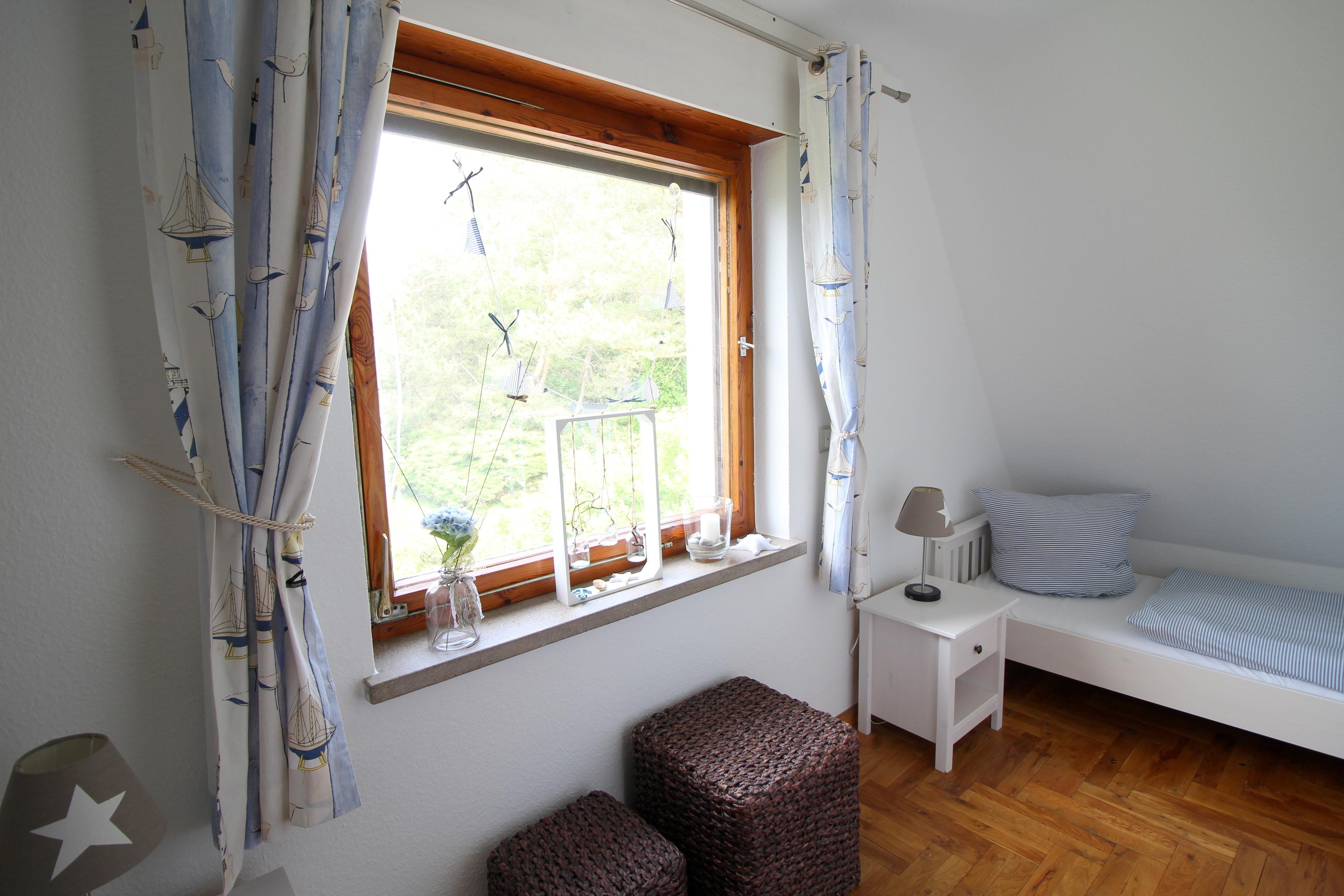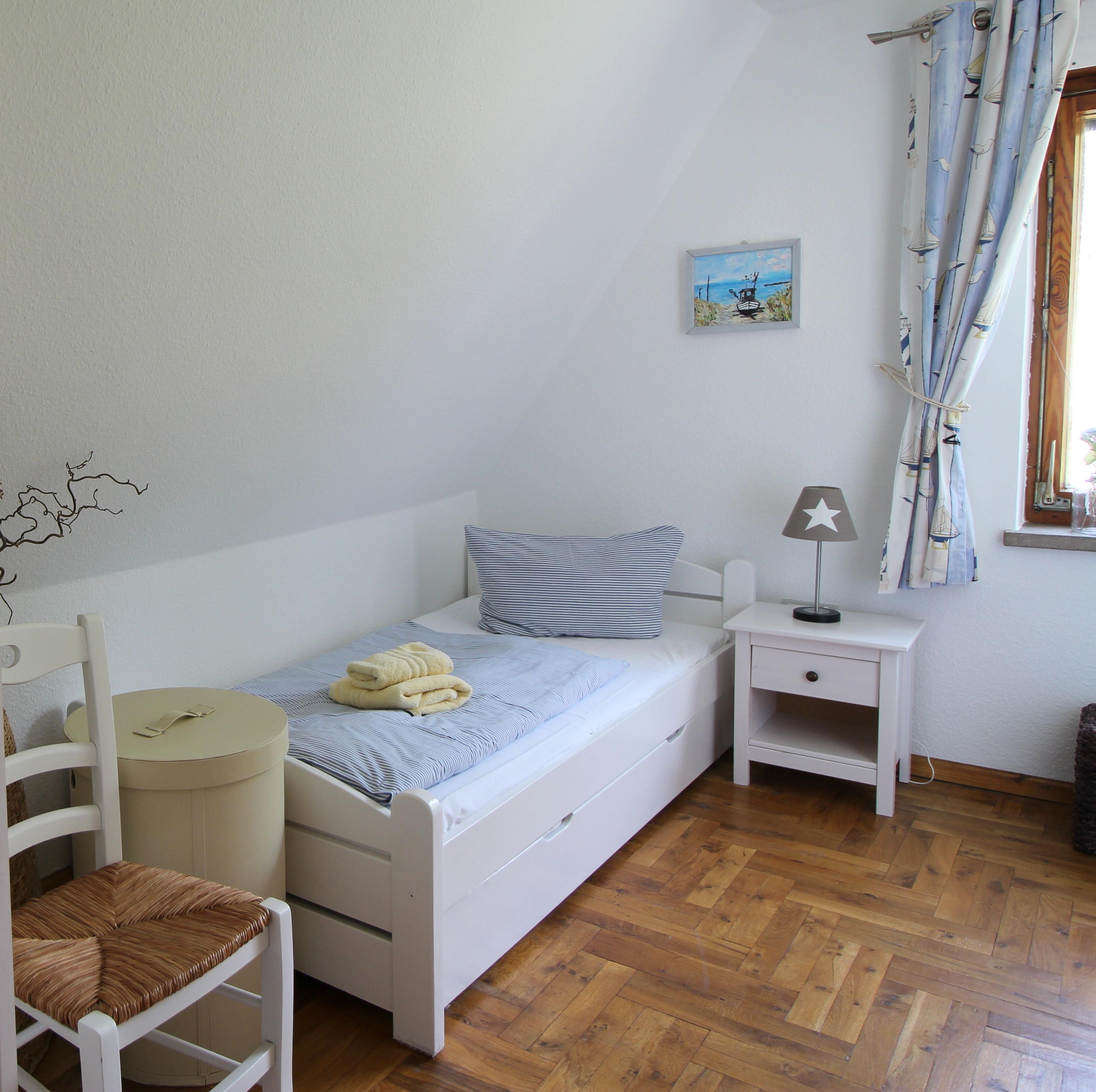 Im OG befinden sich zwei gemütlich eingerichtete Schlafzimmer, eines mit einem Doppelbett und eines mit zwei Einzelbetten, eines davon mit zusätzlichem Ausziehbett. Achtung: Steile Wendeltreppe - daher für kleine Kinder und Gehbehinderte nicht gut geeignet!