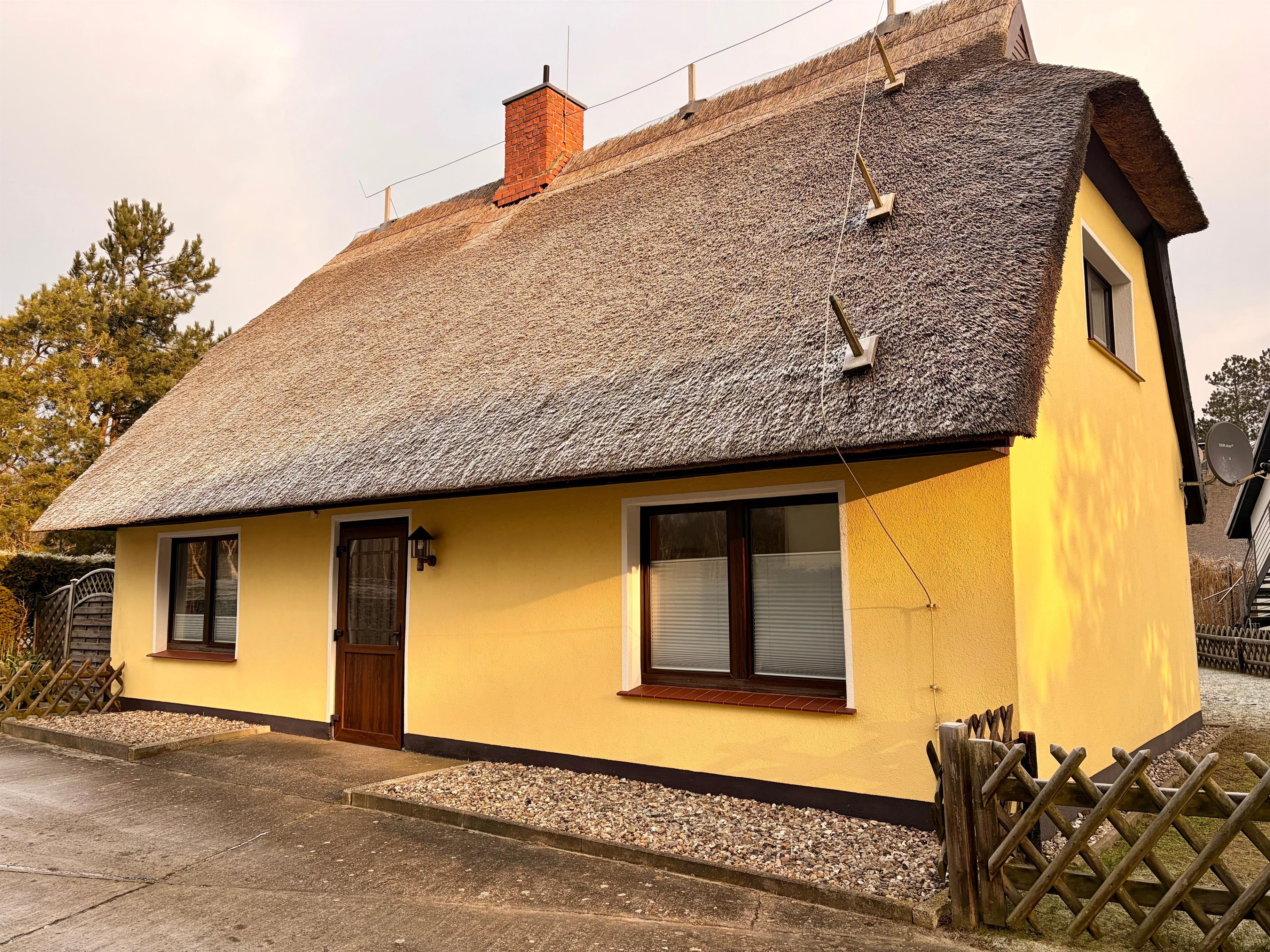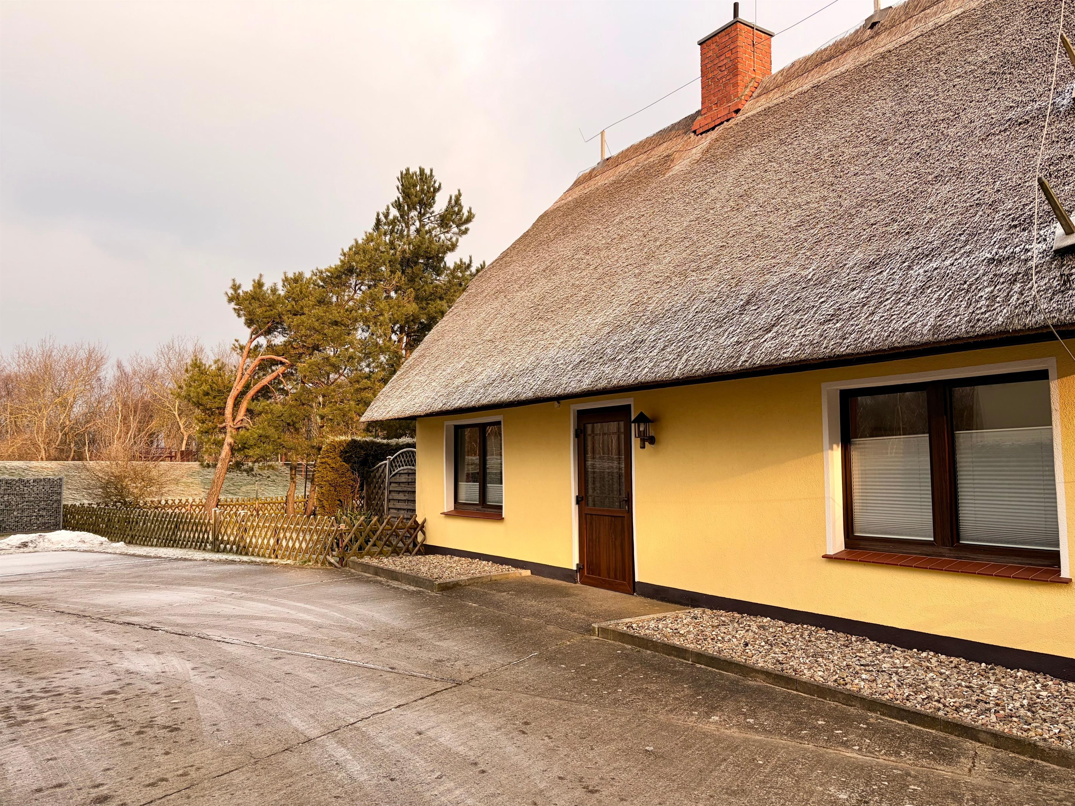Die Ferienwohnung befindet sich in einem Schilfhaus, unmittelbar hinter dem Deich und einem Strandzugang zwischen den Ostseebädern Dierhagen und Wustrow innerhalb der Hotelanlage Ostseehotel Wustrow.