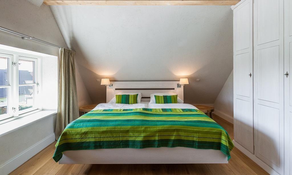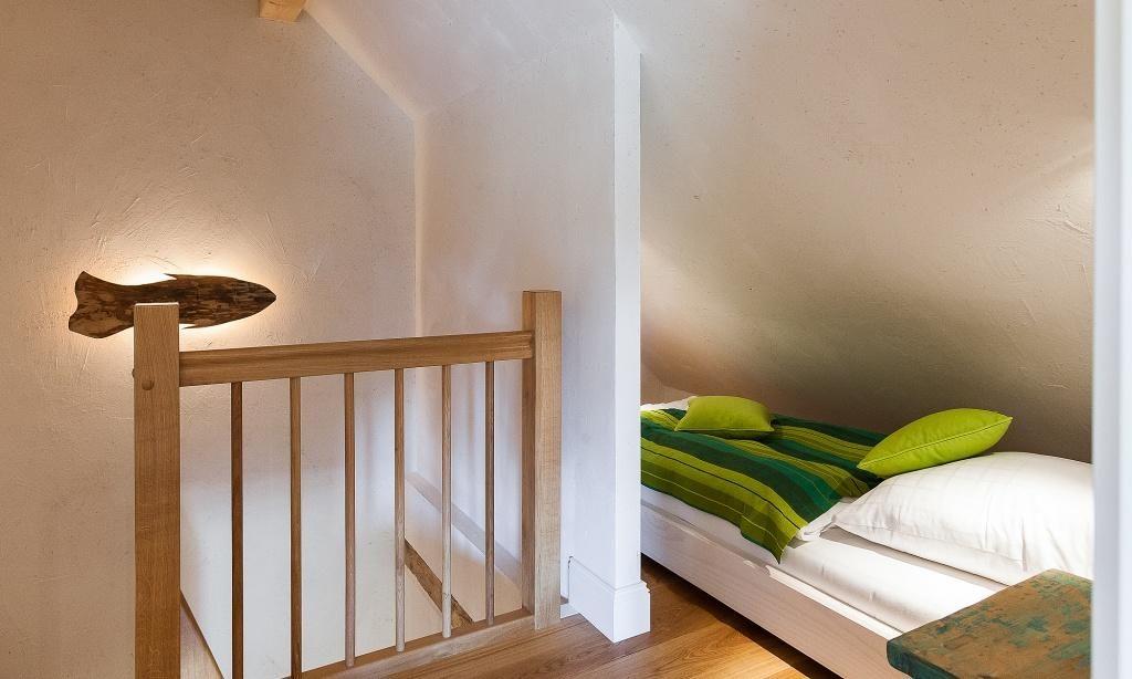 Über den kleinen Flur gelangst du in den großzügigen und lichtdurchfluteten Wohnraum mit einer gemütlichen Sitzecke am modernen Kaminofen. Der einladende Essbereich und die hochwertige Einbauküche sind unmittelbar in den Wohnbereich integriert. Das Schlafzimmer ist mit einem Doppelbett ausgestattet. Das edle Bad verfügt über Dusche/WC. Das Obergeschoss beherbergt ein zweites Schlafzimmer mit einem Doppelbett sowie ein exklusives Badezimmer mit Wanne, Dusche und WC. In einer kleinen Nische ist eine gemütliche Kuschelecke untergebracht.