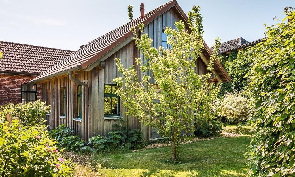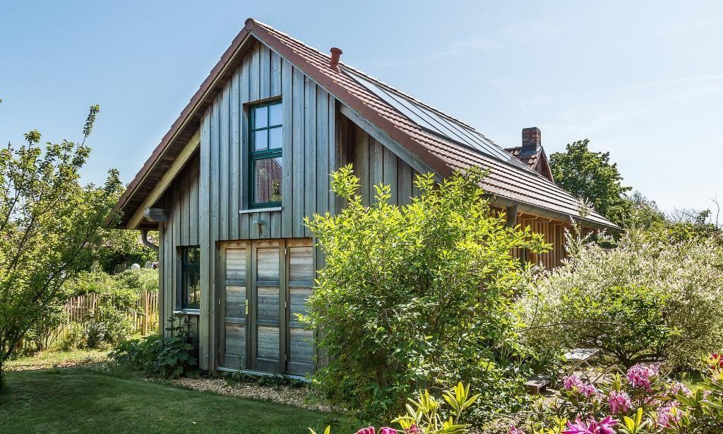 Zum Ferienhaus gehört eine Terrasse in Süd-Ausrichtung. Hier kannst du die Sonne genießen, leckere Grillabende veranstalten oder den Urlaubstag entspannt ausklingen lassen. Ein kleiner Teil des angrenzenden Naturgartens kann gern gemeinschaftlich genutzt werden. Ein PKW-Stellplatz steht dir ebenfalls zur Verfügung.