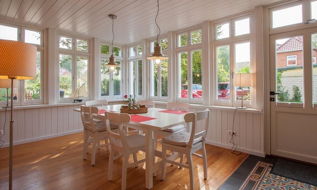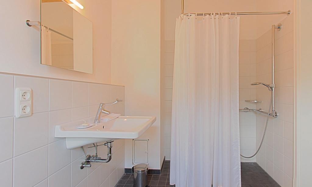 In der Erdgeschosswohnung erwartet dich ein großzügiger Eingangsbereich, von dem du direkt in den hellen Wohnbereich mit gemütlicher Sitzecke und Kaminofen gelangst. Die offene Küche und der lichtdurchflutete Essbereich im Wintergarten sorgen für geselliges Kochen und Klönen. Des Weiteren stehen dir ein Schlafzimmer mit Doppelbett, ein zweites Schlafzimmer mit zwei Einzelbetten sowie ein Bad mit Dusche/WC zur Verfügung. Die Wohnung wurde behindertenfreundlich geplant und mit breiten Türöffnungen, Badezimmervorrichtungen, einer ebenerdigen Dusche, einen unterfahrbaren Waschtisch sowie einer Rampe am Wintergarten eingerichtet. Das bedeutet vor allem für Rollstuhlfahrer optimale Bewegungsfreiheit.
