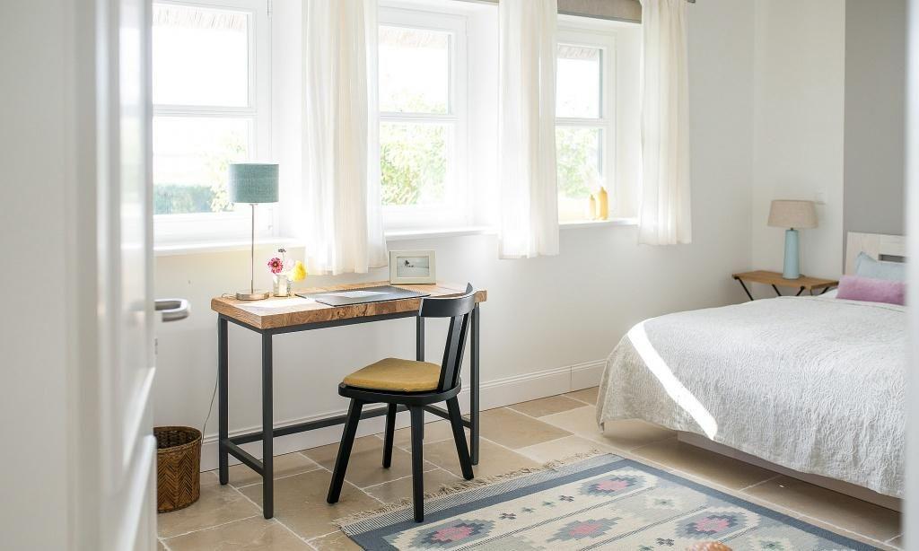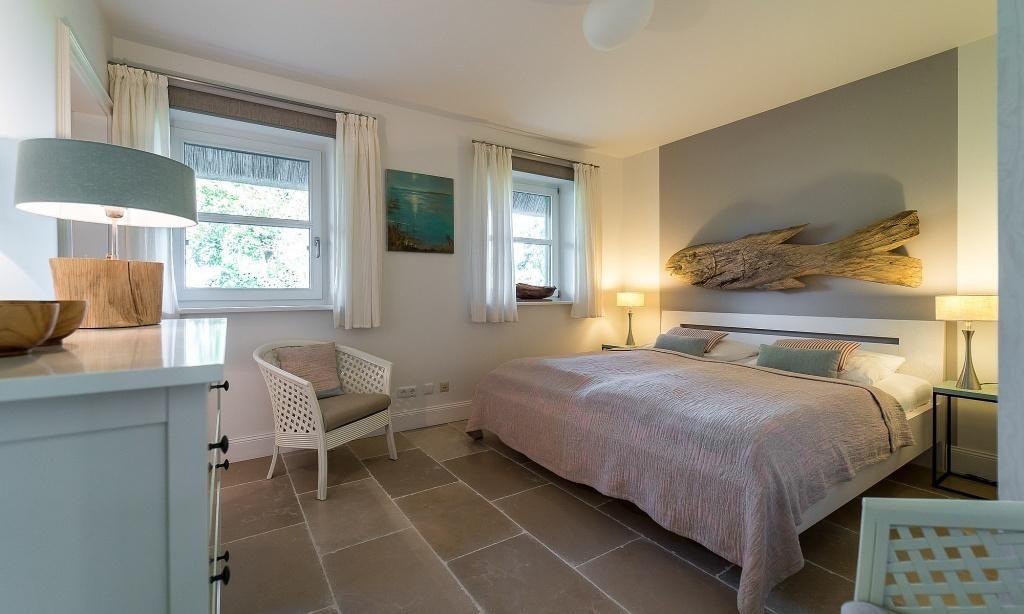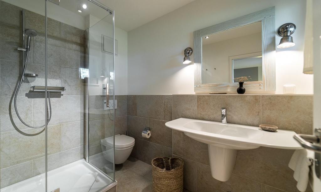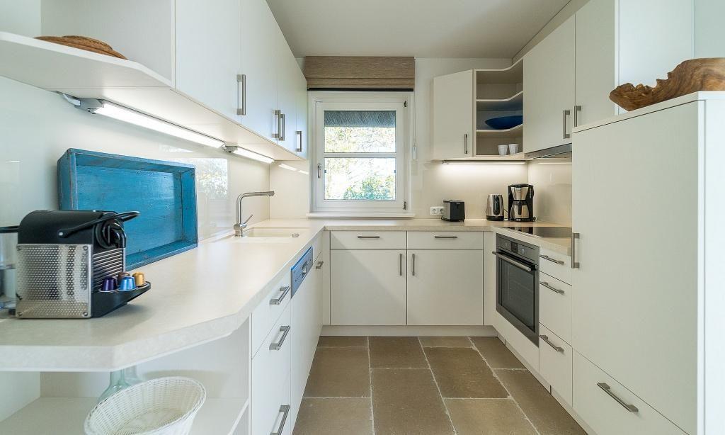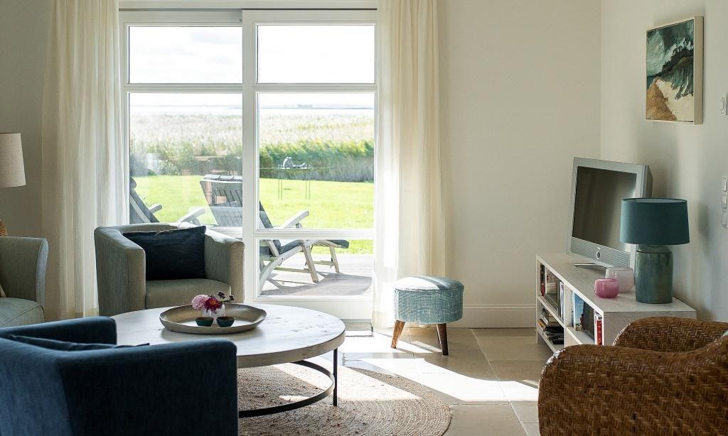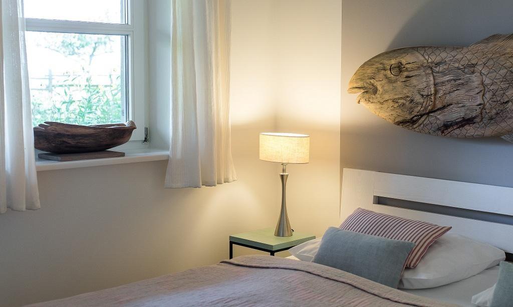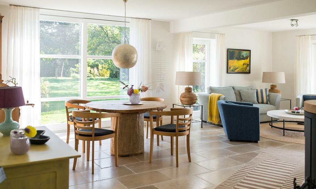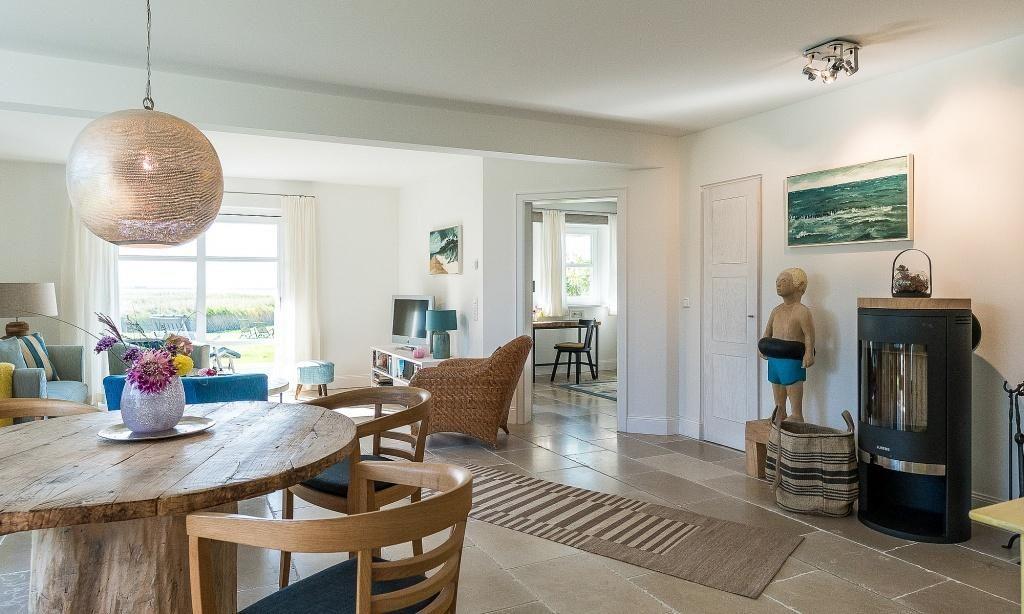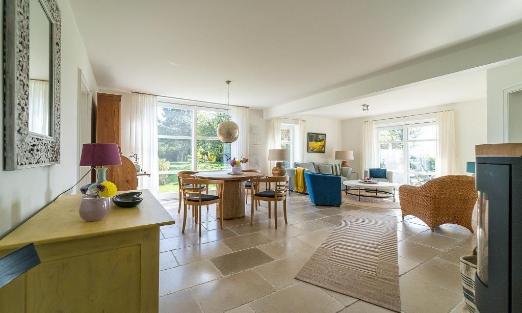 Die Ferienwohnung begeistert durch ihre liebevolle und zeitgleich sehr hochwertige Ausstattung. Es erwartet dich ein lichtdurchfluteter Wohnraum mit einer gemütlichen Sitzecke mit Sesseln sowie einem traumhaften Essbereich an bodentiefen Fenstern. Zum exklusiven Wohnraum gehören auch ein Kaminofen und ein wundervoller Blick in den Garten. Die moderne Küche befindet sich separat und ist ebenfalls sehr komfortabel ausgestattet. Die harmonischen Farben und Materialien führen sich auch in der Einrichtung der Schlafzimmer fort, die mit exquisiten Doppelbetten und ausgesuchten Deko-Elementen möbliert sind. Hier findest du den erholsamen Schlaf, den du dir im Urlaub wünschst. Ein Bad en Suite mit Dusche/WC sowie ein zweites Bad mit Dusche/WC vervollständigen die komfortable und 100 Quadratmeter große Ferienwohnung.