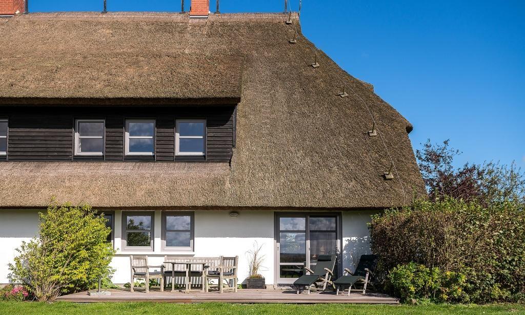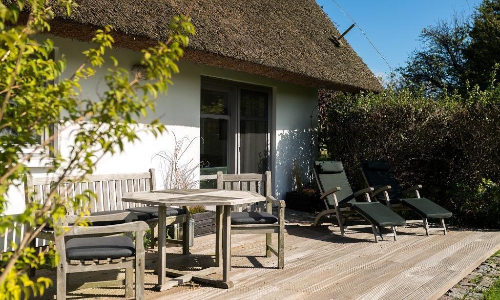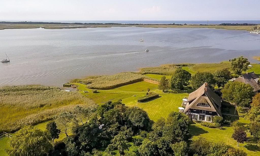 Ein besonderes Highlight ist die großzügige Holzterrasse, von der du einen weiten Blick über das 8000 Quadratmeter große Wassergrundstück und auf vorbeiziehende Zeesboote genießt. Diese Aussicht und Lage ist absolut einmalig auf dem Fischland und verspricht Erholung und ein ganz besonderes Urlaubs-Feeling. In dem Nebengebäude steht dir eine kleine Wellnessoase mit Sauna*, Dusche, Fußbad, WC, Ruheraum und Fitnessgeräte zur Verfügung. Zudem bietet dir das Naturgrundstück eine Liegewiese, einen Grillplatz und verschiedene Sitzgelegenheiten mit einem atemberaubenden Blick auf das Wasser. Abgerundet wird dieses Traumensemble mit einem eigenen kleinen Hafen samt Ruderboot, mit dem du gern über den Bodden paddeln darfst. Ein PKW-Stellplatz sowie Abstellmöglichkeiten für Fahrräder und Surfbretter stehen zur Verfügung.