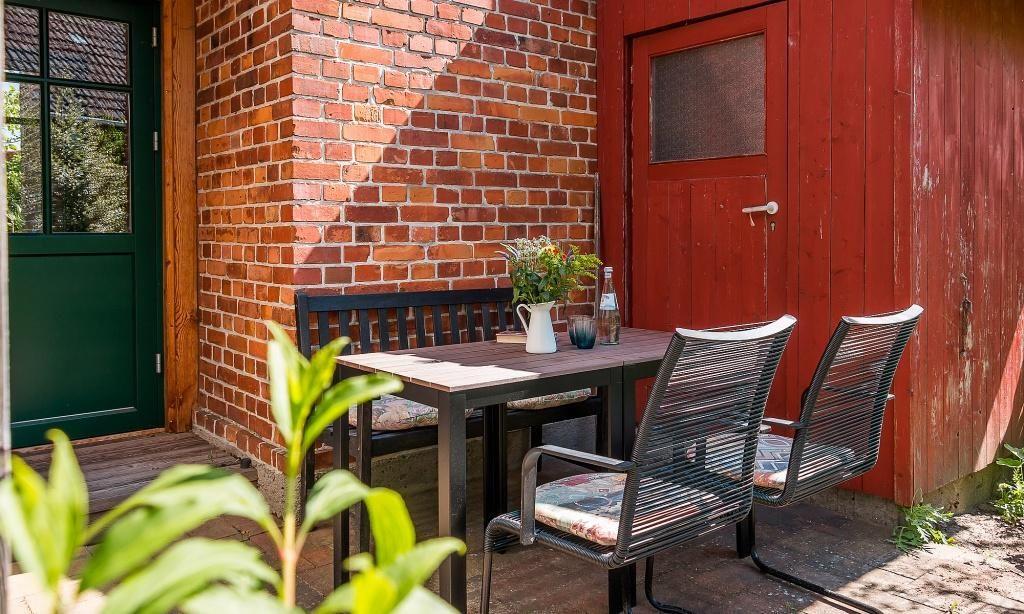 Das Haus verfügt über einen separaten Eingang und eine kleine Terrasse in Süd-Ausrichtung, auf der du entspannte Urlaubsmomente genießen kannst. Ein kleiner Teil des angrenzenden Gartens kann gern gemeinschaftlich genutzt werden, zum Beispiel zum Sonnenbaden. Fahrräder kannst du in einem kleinen überdachten Schuppen (nicht abschließbar) unterstellen. Außerdem steht dir ein PKW-Stellplatz zur Verfügung.