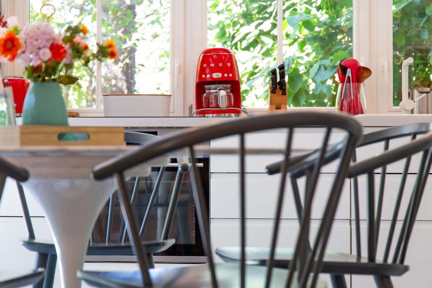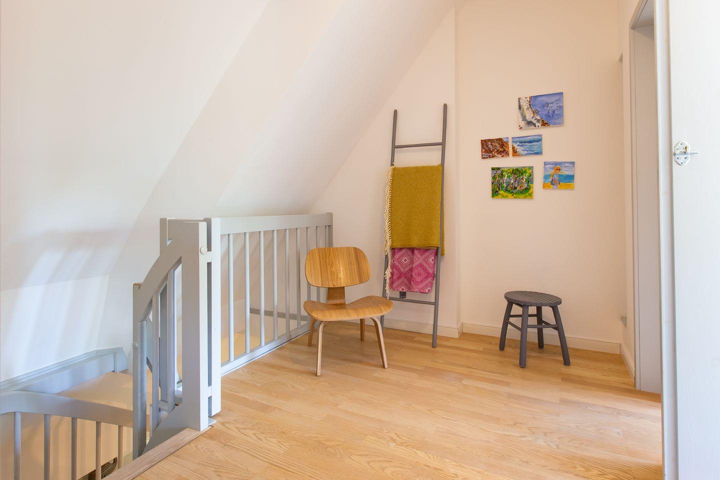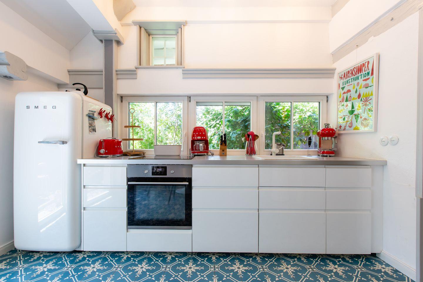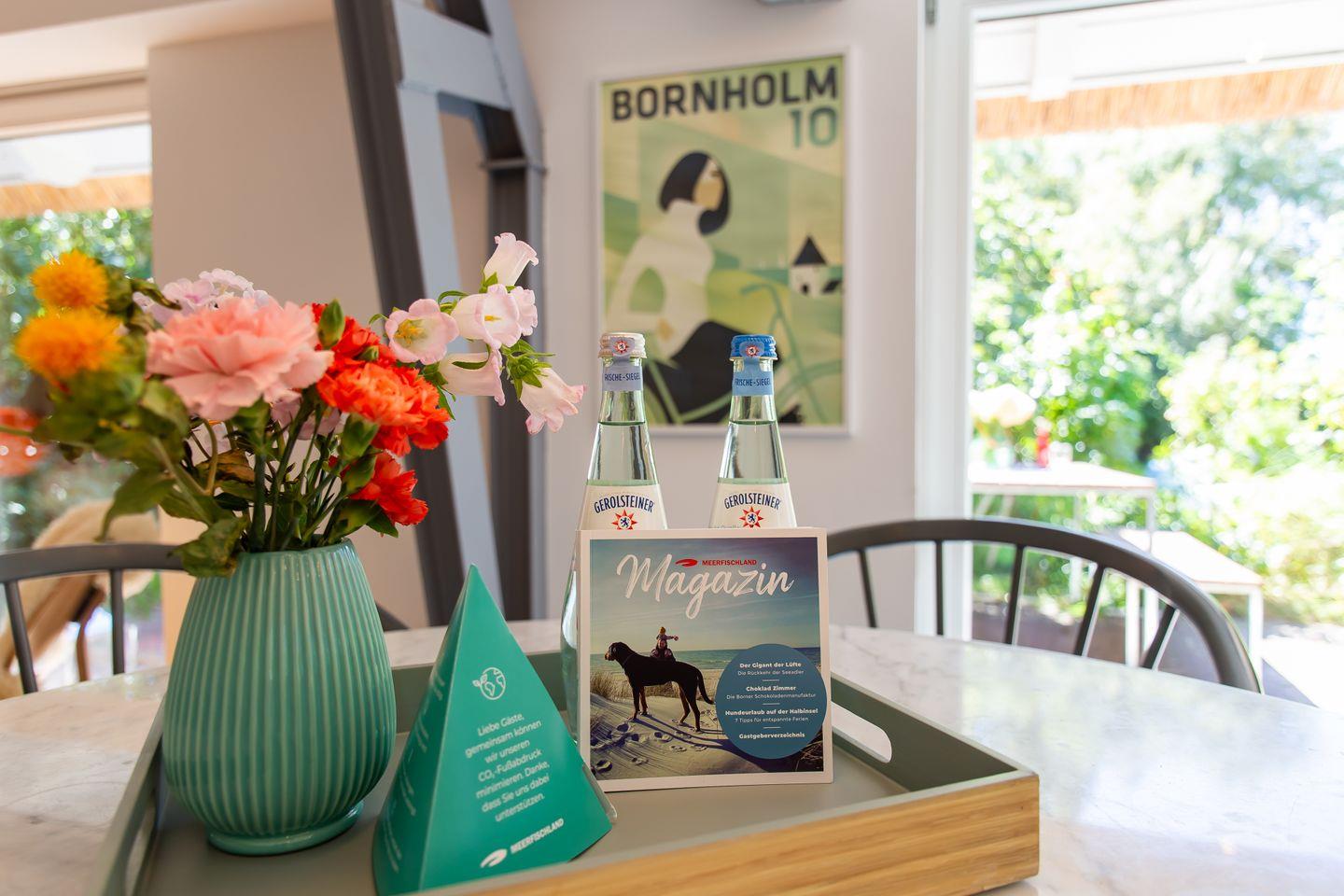 Es ist dieser unerwartete Kontrast zwischen traditioneller Fischlandarchitektur und moderner Inneneinrichtung, die den Aufenthalt in dieser hochwertig sanierten Doppelhaushälfte zu einem ganz besonderen Urlaubserlebnis macht. Freigelegte Holzbalken, schiefe Wände und massive Holztüren sind Zeitzeugen einer uralten Baukultur und zugleich liebevolle Dekoration der stilvollen und eleganten Inneneinrichtung. Die 115 Quadratmeter Wohnfläche verteilen sich auf zwei Etagen. Beim Betreten des Flurs sieht man bereits, dass das Ambiente durch warme Naturmaterialien, helle Farben und eine offene und großzügige Raumaufteilung geprägt ist. Ein komfortables Badezimmer mit Dusche, eine topmoderne Küche mit Esstisch sowie der boheme und künstlerisch gestaltete Wohnbereich befinden sich im Erdgeschoss. Über eine Holztreppe gelangt man in ein weiteres Badezimmer mit Badewanne sowie die zwei Schlafzimmer des Hauses. Die offen gelegten Holzbalken sowie Einbauten wirken wie Designobjekte und bieten ein Höchstmaß an Erholung.