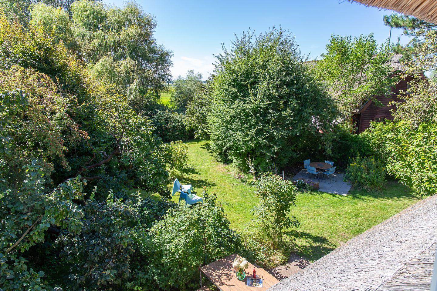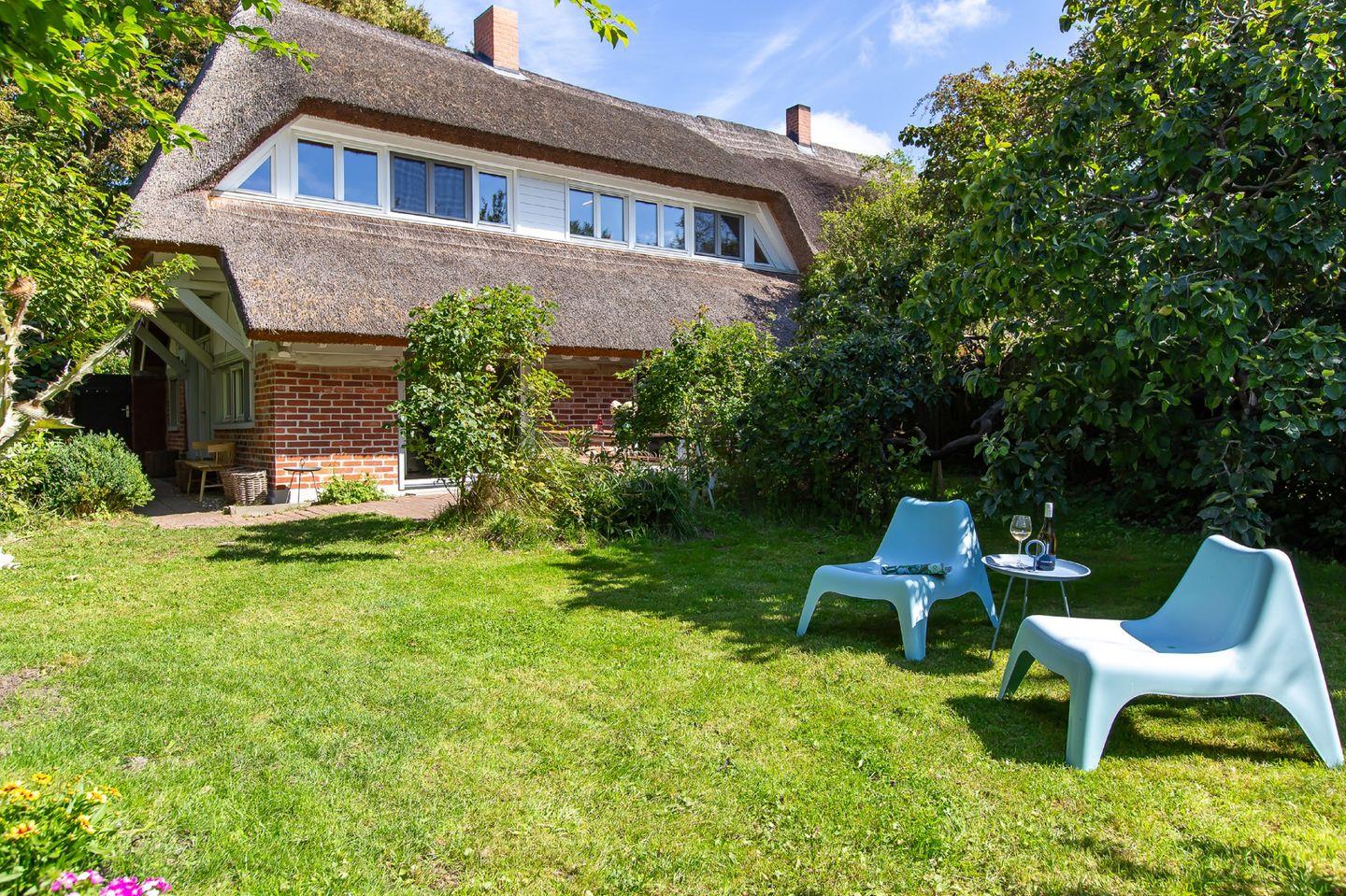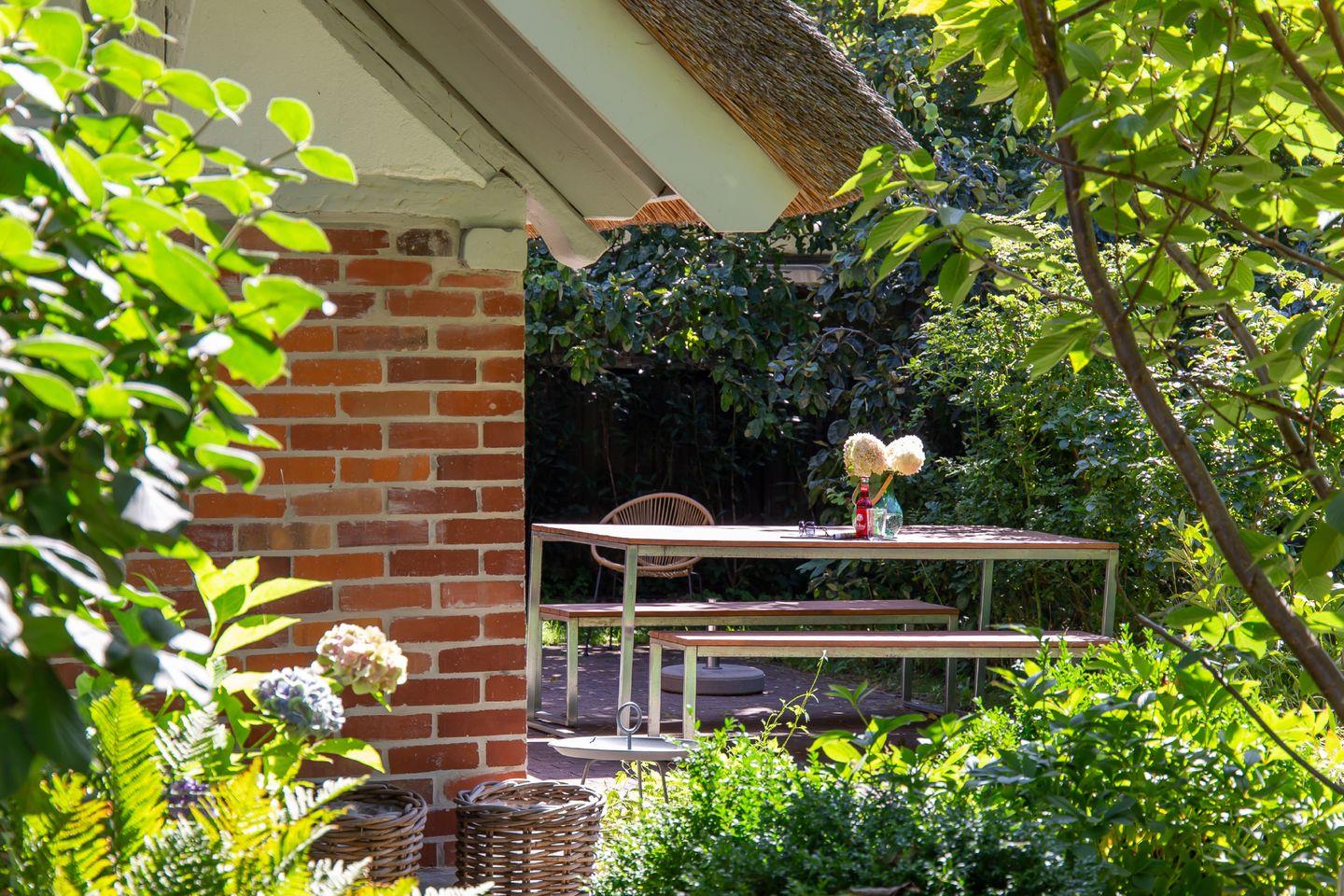 Der Außenbereich begeistert durch seine großzügige Terrasse mit hochwertiger Bestuhlung und weitläufigen Naturgarten. Hier finden sich gleich mehrere lauschige Plätze zum Ausspannen und Durchatmen. Alte Bäume, wilde Sträucher und bunte Blumenbeete finden sich überall auf dem abgeschlossenen Grundstück und sorgen für Urlaubsidylle im eigenen Garten. Eine Außendusche, eine Schaukel, ein Elektrogrill und Sonnenliegen runden das Outdoor-Vergnügen perfekt ab. Des Weiteren gehört zum Ferienhaus ein PKW-Stellplatz auf dem Grundstück.