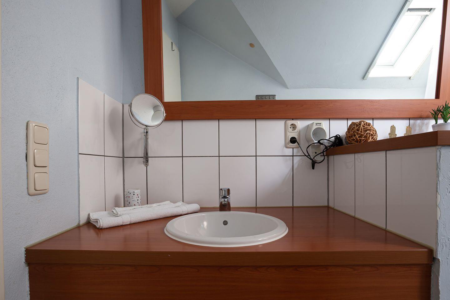 Im Hausflur befindet sich der Hauswirtschaftsraum mit Waschmaschine und Trockner. Beide Geräte werden über einen Münzer betrieben und stehen allen Mietparteien zur Verfügung.
