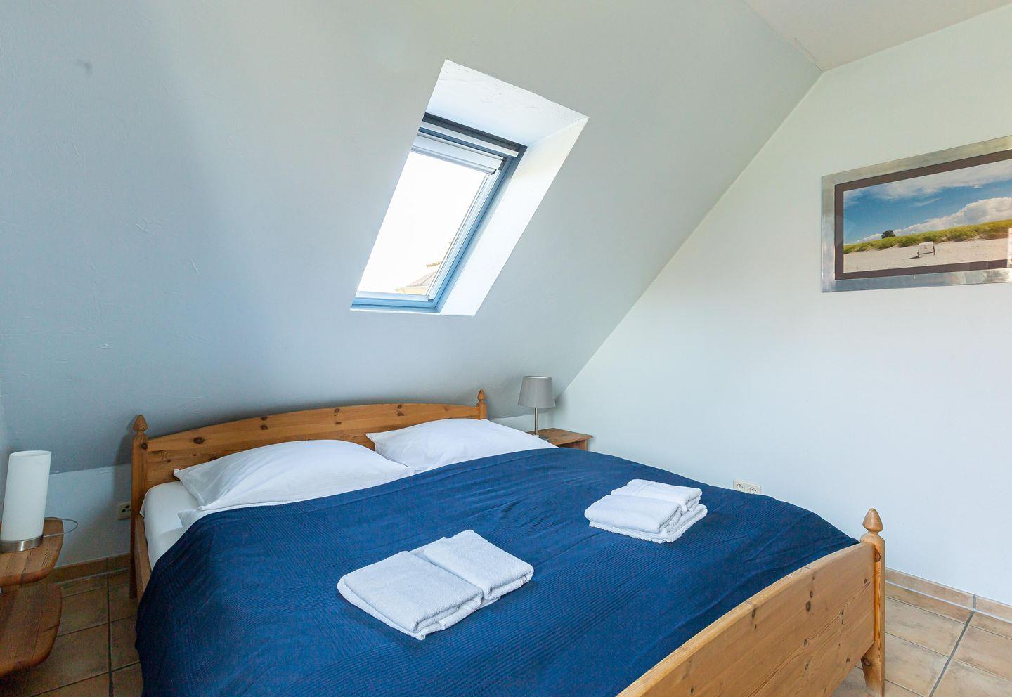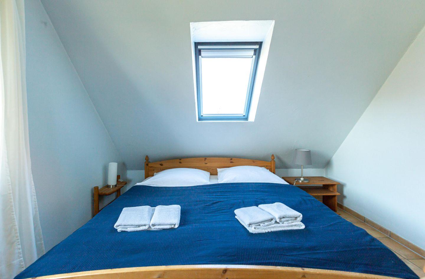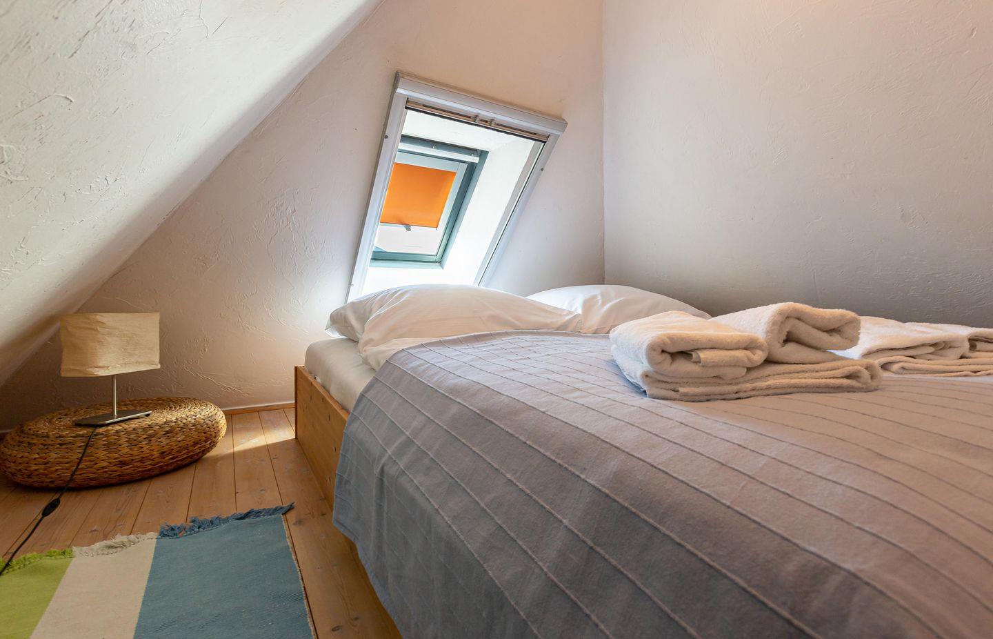 Bitte beachte: Im Sommer kann es im Schlafzimmer, dass sich im Spitzboden befindet, zu warmen Temperaturen kommen.